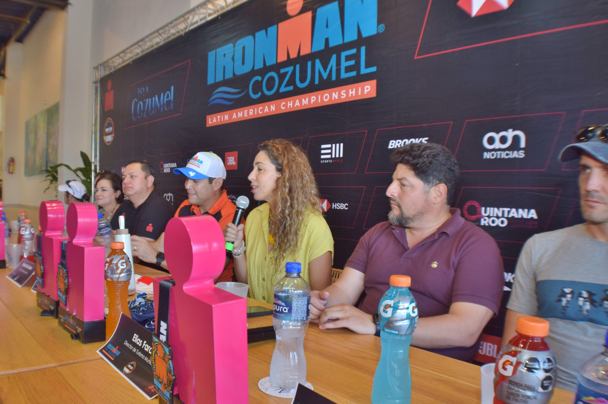A la rueda de prensa acudieron Mauricio Zavala, director de la franquicia Ironman México, Pablo Alfonso Aguilar, representante del Consejo de Promoción Turística de Quintana Roo (CPTQ), Juanita Obdulia Alonso Marrufo, directora de la Fundación de Parques y Museos en representación de la Gobernadora Mara Lezama y Beatriz Tinajero, presidenta de la Asociación de Hoteles Isla Cozumel.