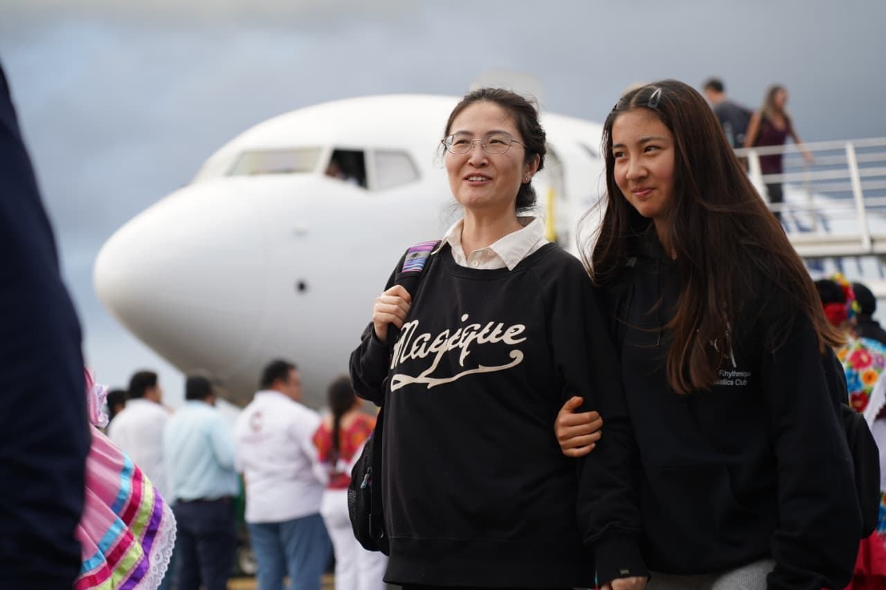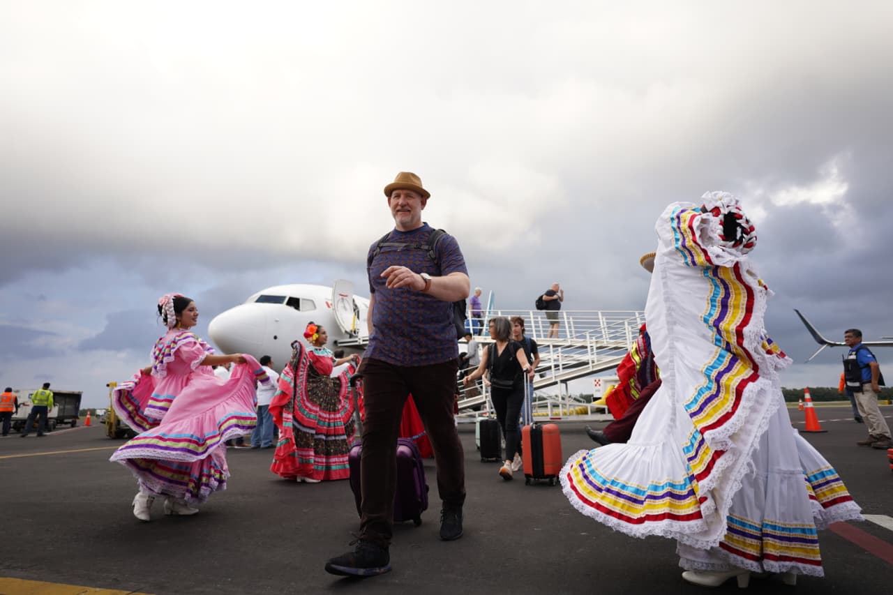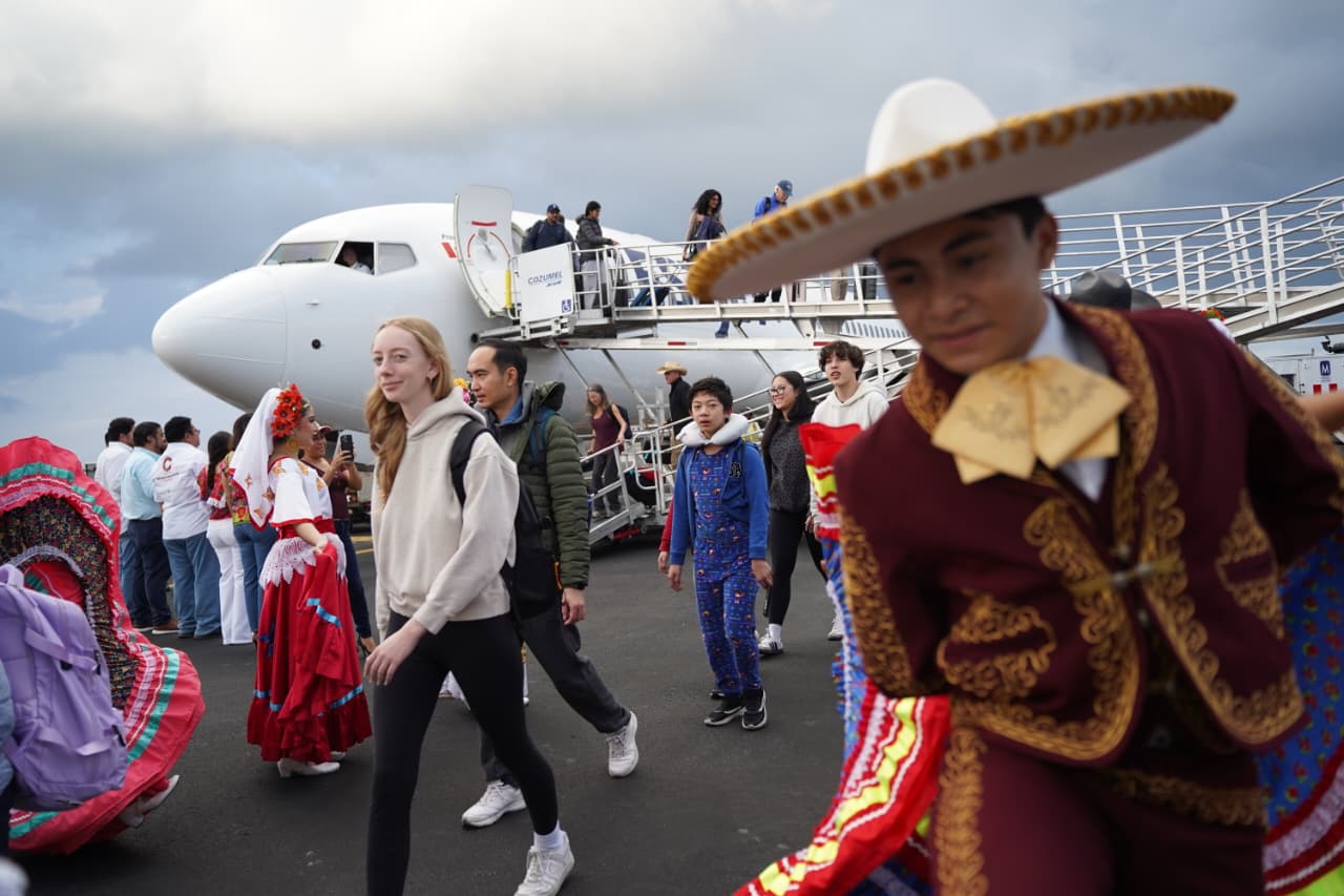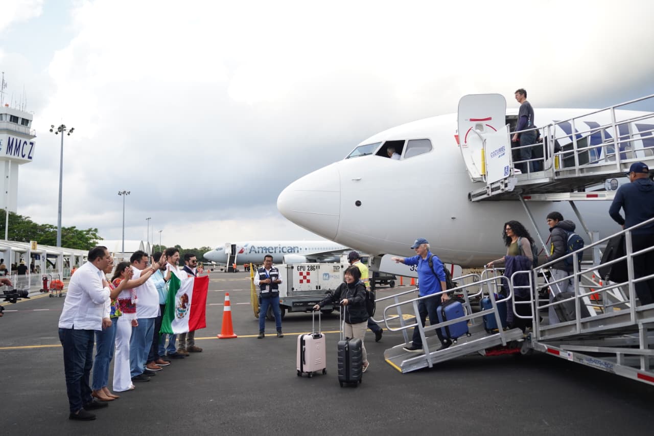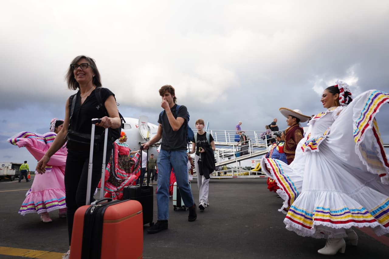 Las y los pasajeros fueron recibidos con música regional mexicana y la presentación del ballet folclórico de la Subdirección de Cultura, quienes dieron la bienvenida con sonrisas y entusiasmo a los visitantes que descendieron del avión para comenzar a disfrutar de las bellezas naturales y la amplia oferta turística del Pueblo Mágico de Cozumel.