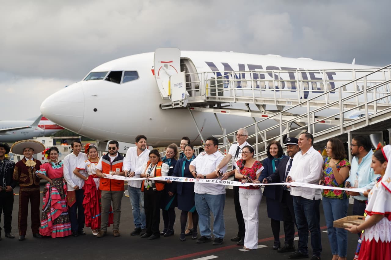 Posteriormente, el presidente municipal, junto con José Elías Farah Ceh, director de Turismo de Cozumel, Jazzmin Janet López Be, gerente de estación en Cozumel de WestJet, María Fernanda Vargas González, segunda regidora y presidenta de la Comisión de Turismo, Pablo Aguilar Torres, representante en Cozumel del Consejo de Promoción Turística de Quintana Roo, Pablo Esteban Arjona Ortiz, administrador del Aeropuerto de Cozumel (ASUR) y Jamyl Adrián Pacheco Macías, representante local y encargado de la subrepresentación federal del Instituto Nacional de Migración, realizaron el tradicional corte de listón, acompañados del piloto Brent Stewart, el copiloto Kirk Fraser y la tripulación de sobrecargos.