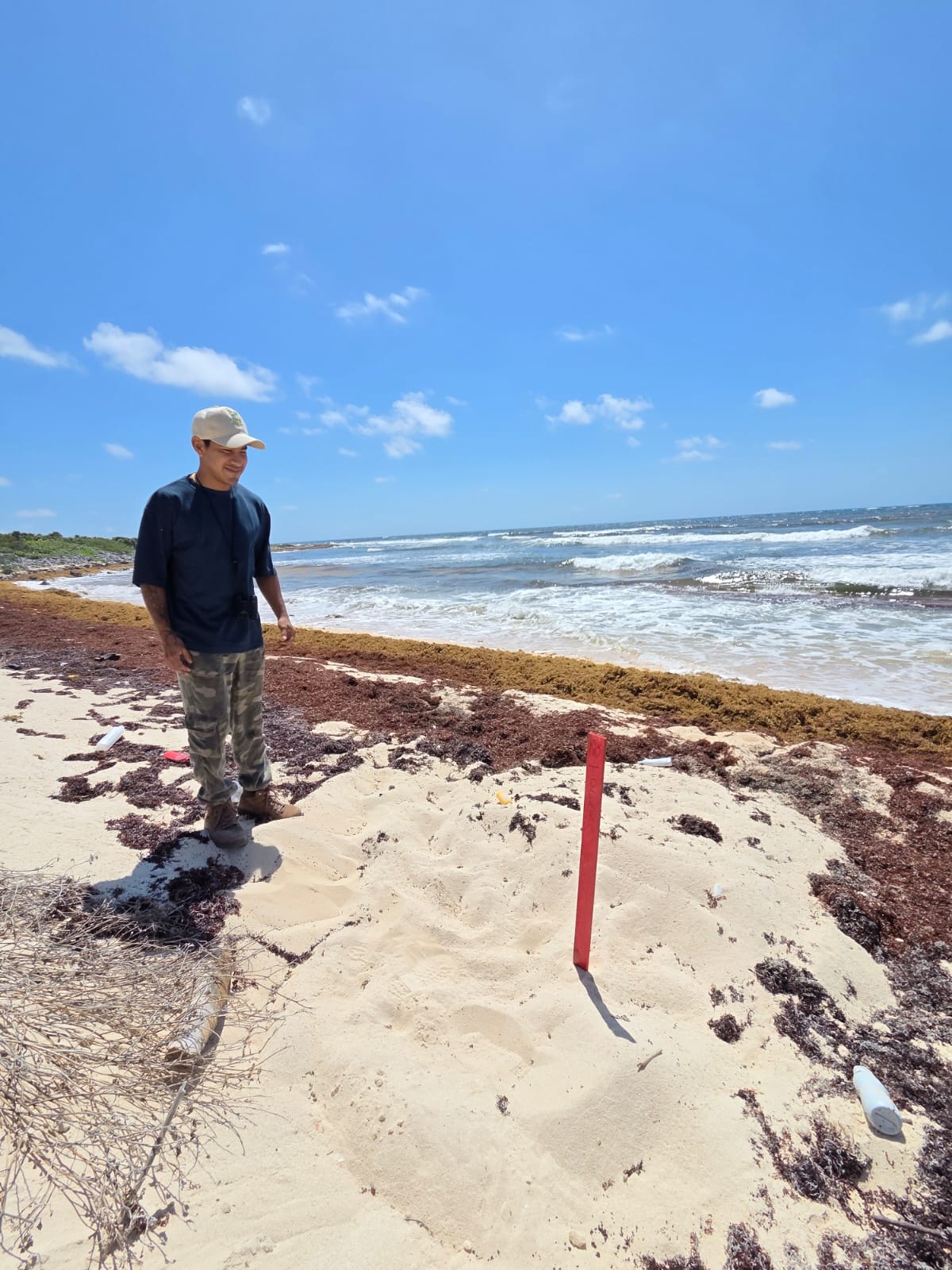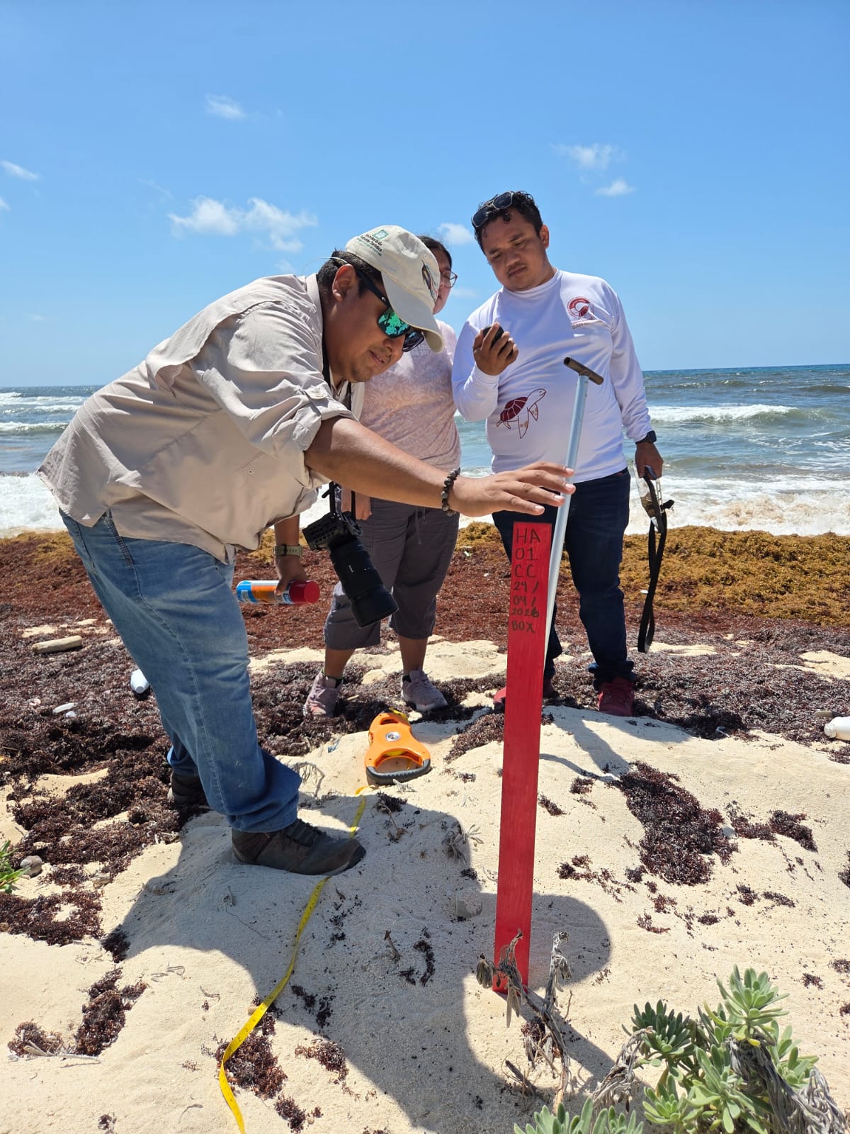 La Subdirección de Ecología por encomienda del presidente municipal, José Luis Chacón Méndez, realizó el marcaje de los primeros nidos de tortuga caguama (Caretta caretta) correspondientes a la temporada 2026, como parte de las acciones permanentes de conservación de las especies marinas protegidas en la isla.