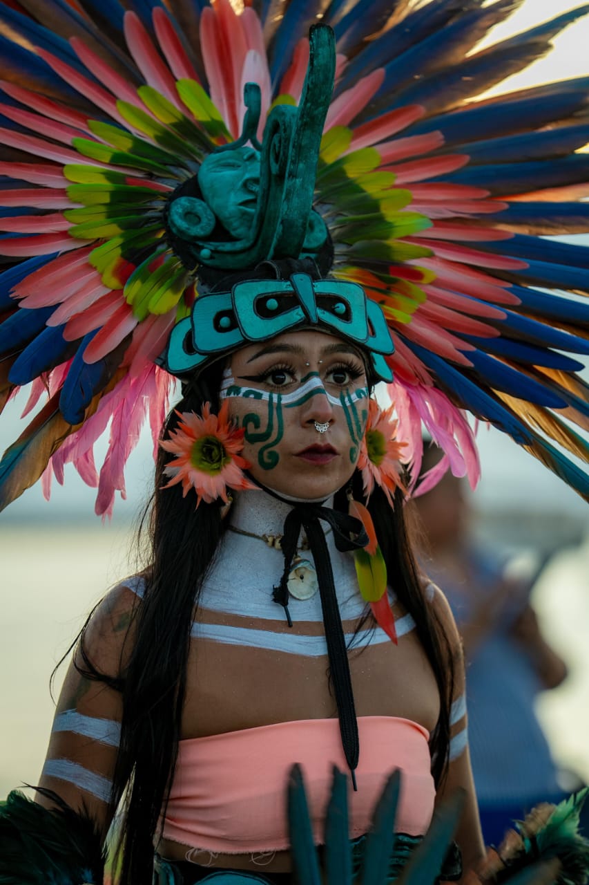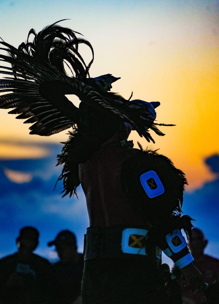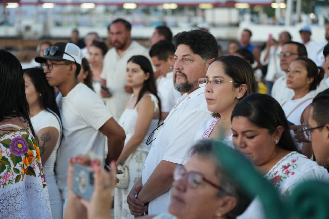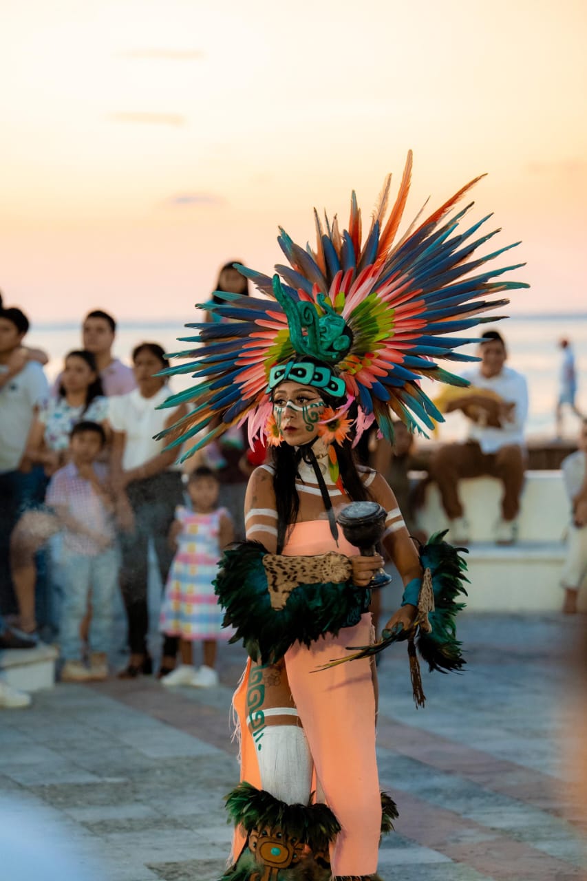 Durante la ceremonia de despedida al sol y bienvenida a Ixchel, un ritual maya lleno de simbolismo, estuvo a cargo del chamán José León Ek Pech, quien agradeció a los cuatro puntos cardinales y ofreció tributo a Itzamná, Dios del Sol, e Ixchel, Diosa de la Luna. La atmósfera espiritual y cultural fue enriquecida por la participación del grupo prehispánico Ool Kuxtal, creando un momento de profunda conexión con las raíces mayas.