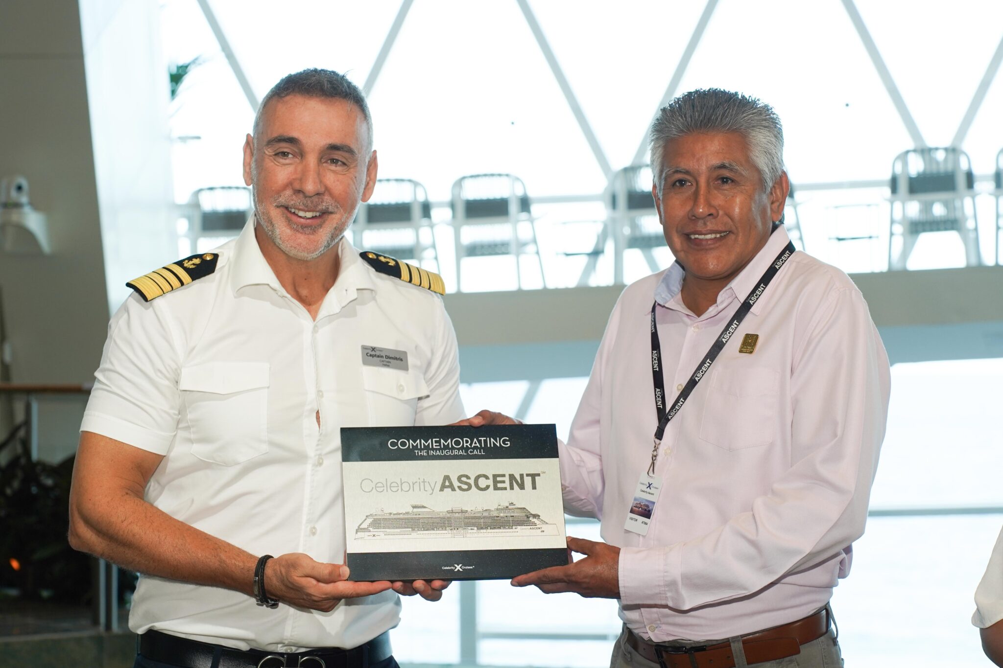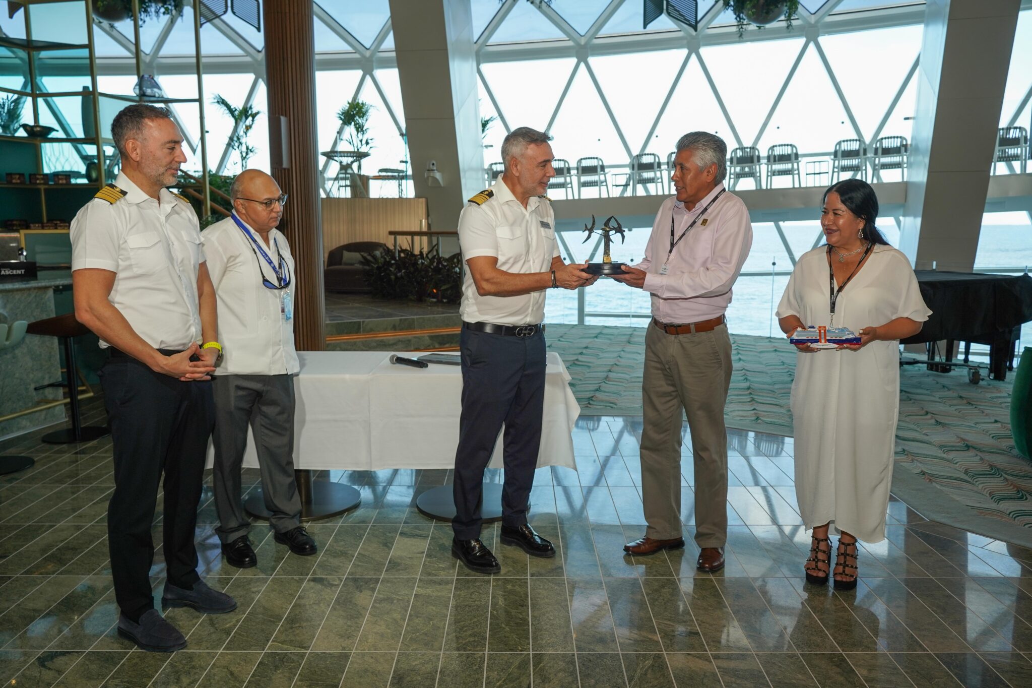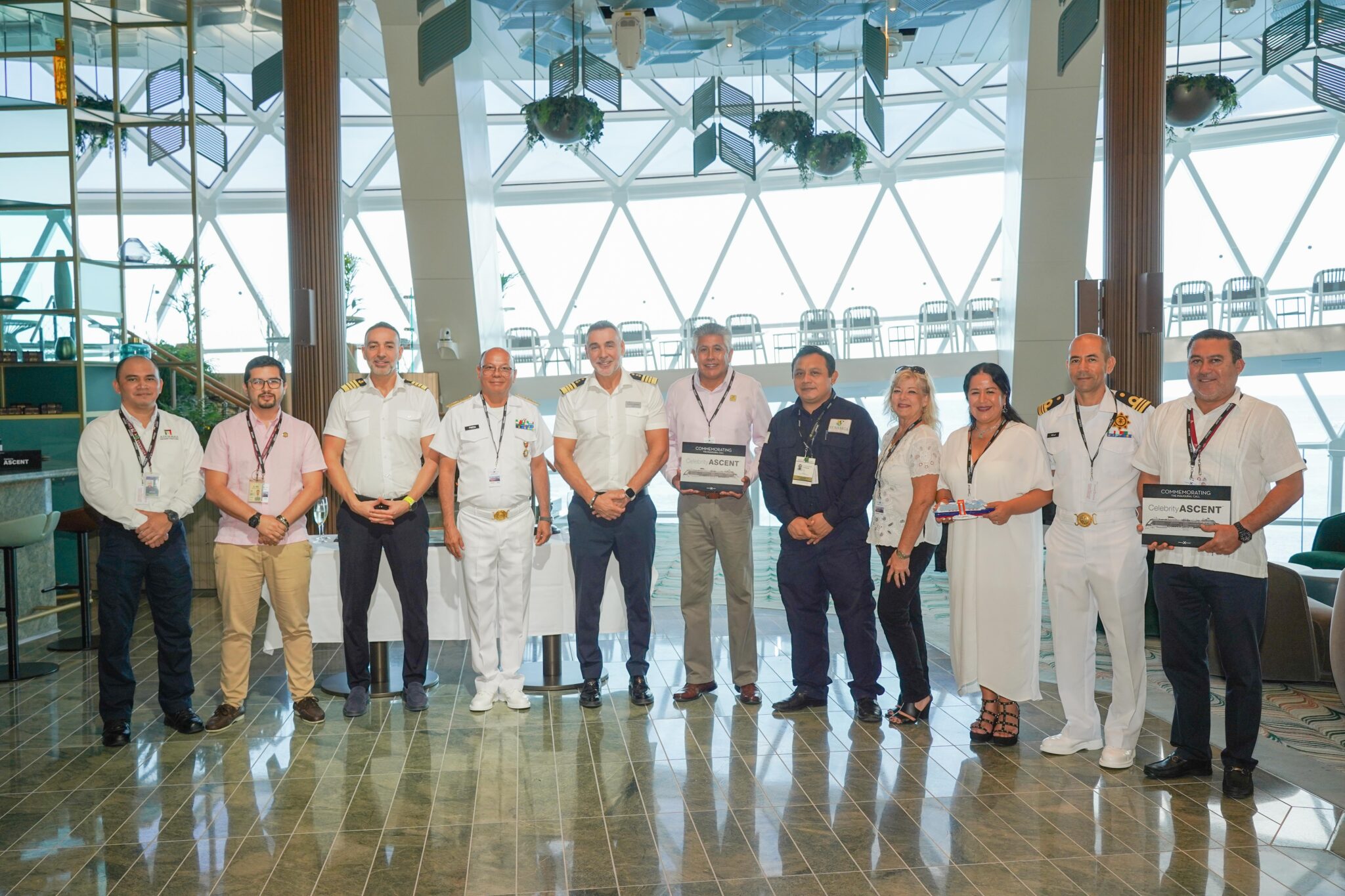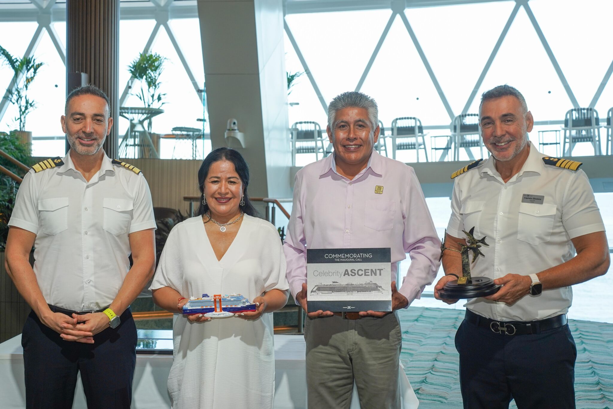 Mediante una ceremonia a bordo de la embarcación, el secretario general, Ociel González González, a nombre de la presidenta municipal, Juanita Alonso Marrufo, dio la bienvenida a tripulación y pasajeros del “Celebrity Ascent” comandada por el capitán Olivier Dimitrios Kafetzzis.