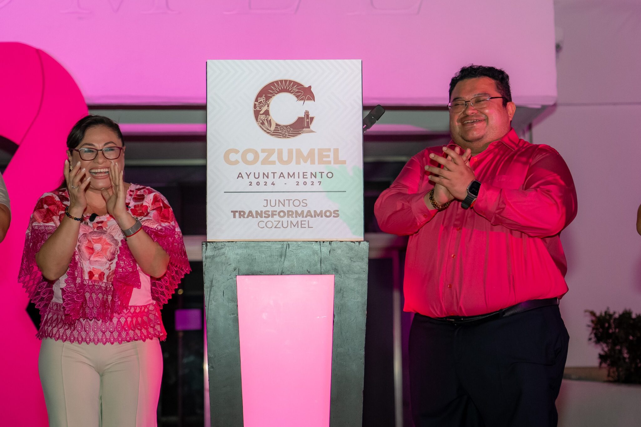 Como parte de las actividades alusivas al mes rosa, y en el marco del Día Mundial Contra el Cáncer de Mama, Que se conmemora el 19 de octubre, el presidente municipal José Luis Chacón Méndez, en compañía de su esposa Diana Sosa Blanco, presidenta honoraria del Sistema DIF Cozumel, encabezó el encendido de luces de color rosa que iluminarán la fachada del Palacio Municipal, como símbolo de esperanza, amor y fortaleza en la lucha contra el cáncer de mama.