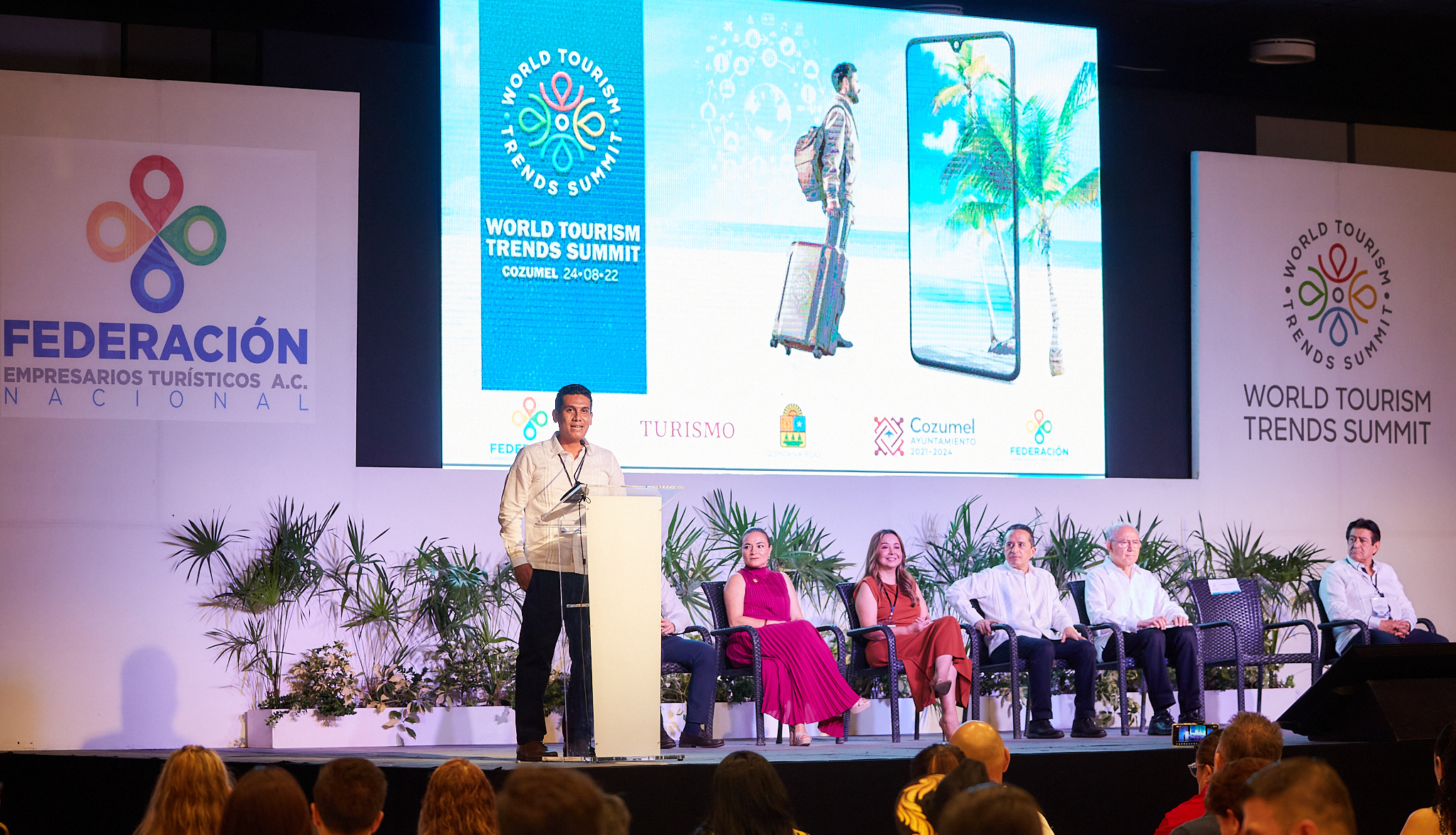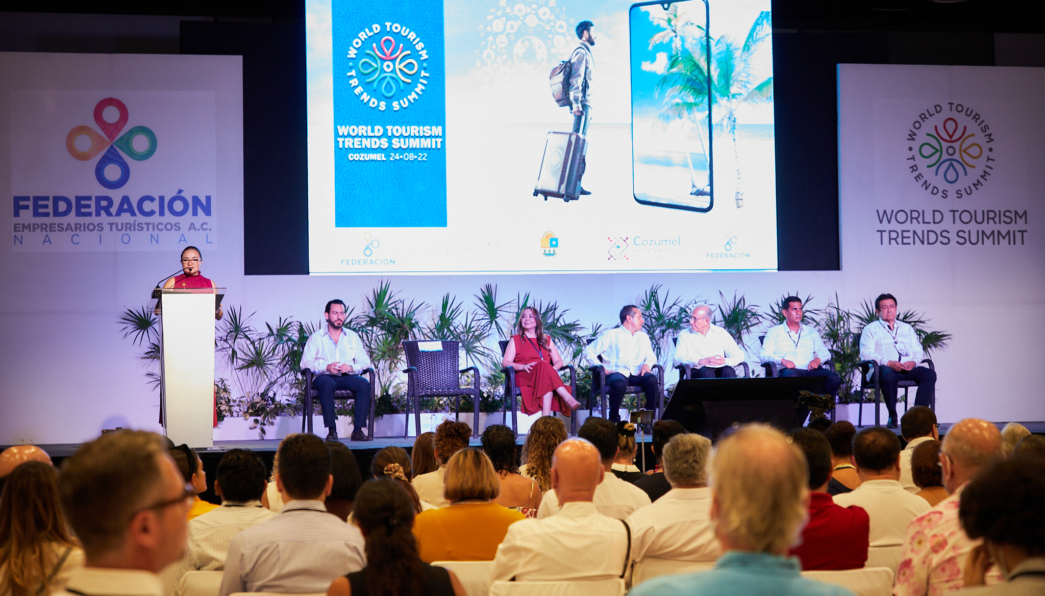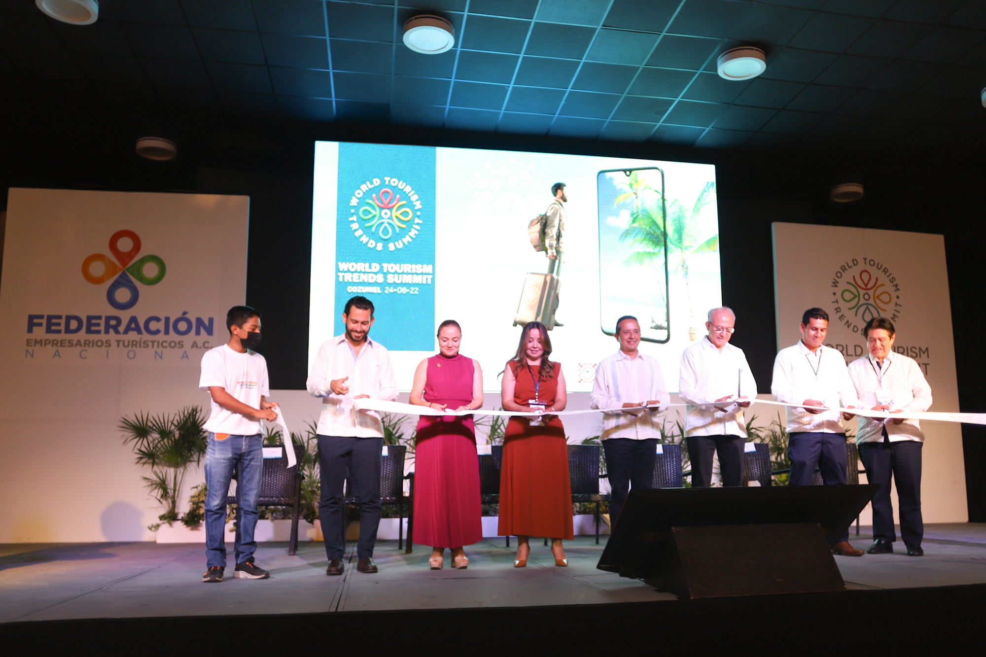 La presidenta municipal Juanita Alonso Marrufo acompañó al gobernador del estado de Quintana Roo, Carlos Manuel Joaquín González a inaugurar el World Turism Trends Summit (Congreso mundial de turismo de tendencias) organizada por la Federación de Empresarios Turísticos (Fetur) Nacional que convierte a Cozumel en sede de este primer innovador evento que tendrá cerca de mil participantes presenciales y en línea.
