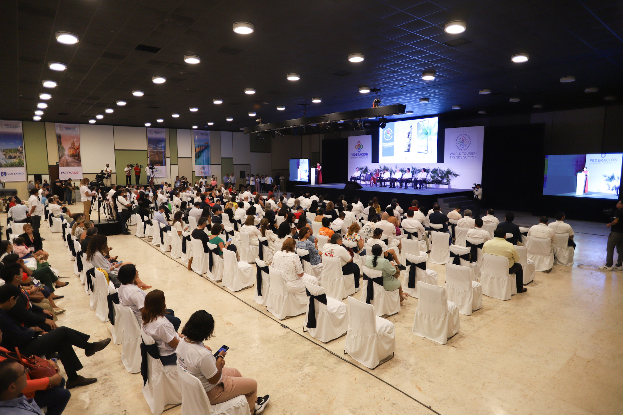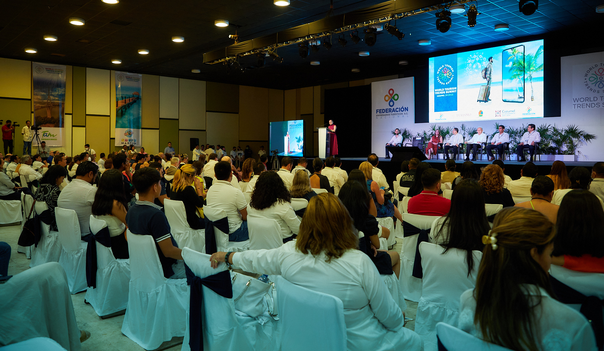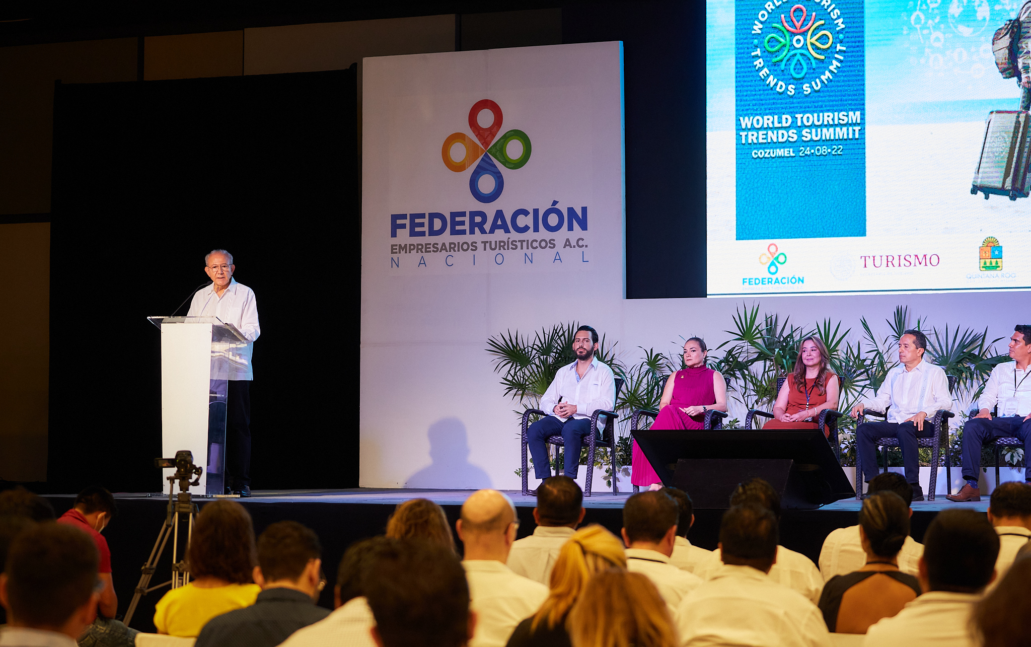 La presidenta municipal Juanita Alonso Marrufo acompañó al gobernador del estado de Quintana Roo, Carlos Manuel Joaquín González a inaugurar el World Turism Trends Summit (Congreso mundial de turismo de tendencias) organizada por la Federación de Empresarios Turísticos (Fetur) Nacional que convierte a Cozumel en sede de este primer innovador evento que tendrá cerca de mil participantes presenciales y en línea.