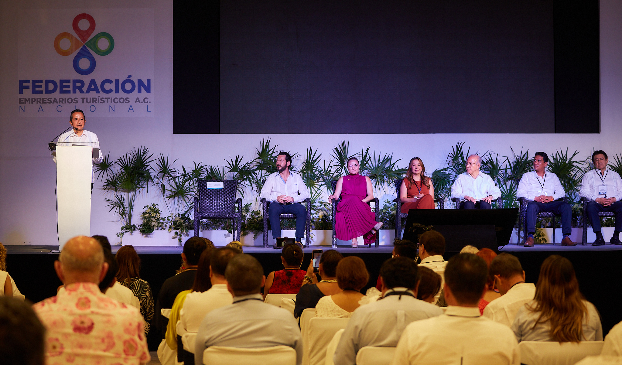 Asimismo, se contó con la presencia del secretario de Turismo en Quintana Roo Bernardo Cueto Riestra y Armando Bojórquez Patrón, presidente saliente de la Fetur Nacional quienes también atestiguaron la primera ponencia magistral del ejecutivo estatal Carlos Manuel Joaquín González.