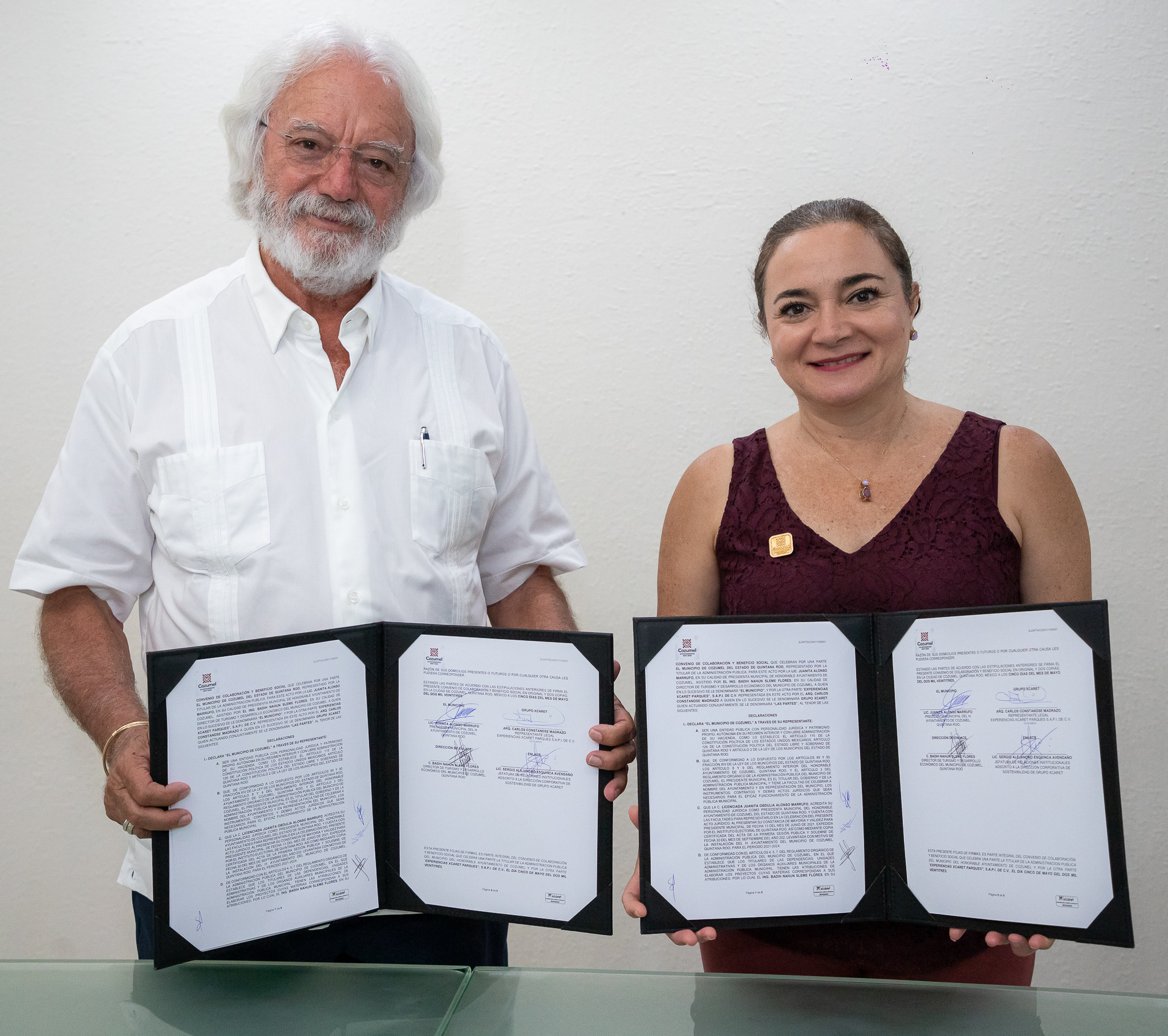 Cozumel, 09 junio de 2023.- Para seguir sumando alianzas que ayuden a generar mayor bienestar a los cozumeleños, la presidenta municipal, Juanita Alonso Marrufo y el Grupo Xcaret a través su socio fundador y secretario del Consejo de administración, Carlos Constandse, firmaron un convenio de colaboración que permitirá unir esfuerzos para impulsar el turismo, preservar el medio ambiente y compartir experiencias que ayuden a mejorar la calidad de vida de quienes habitan en la isla.