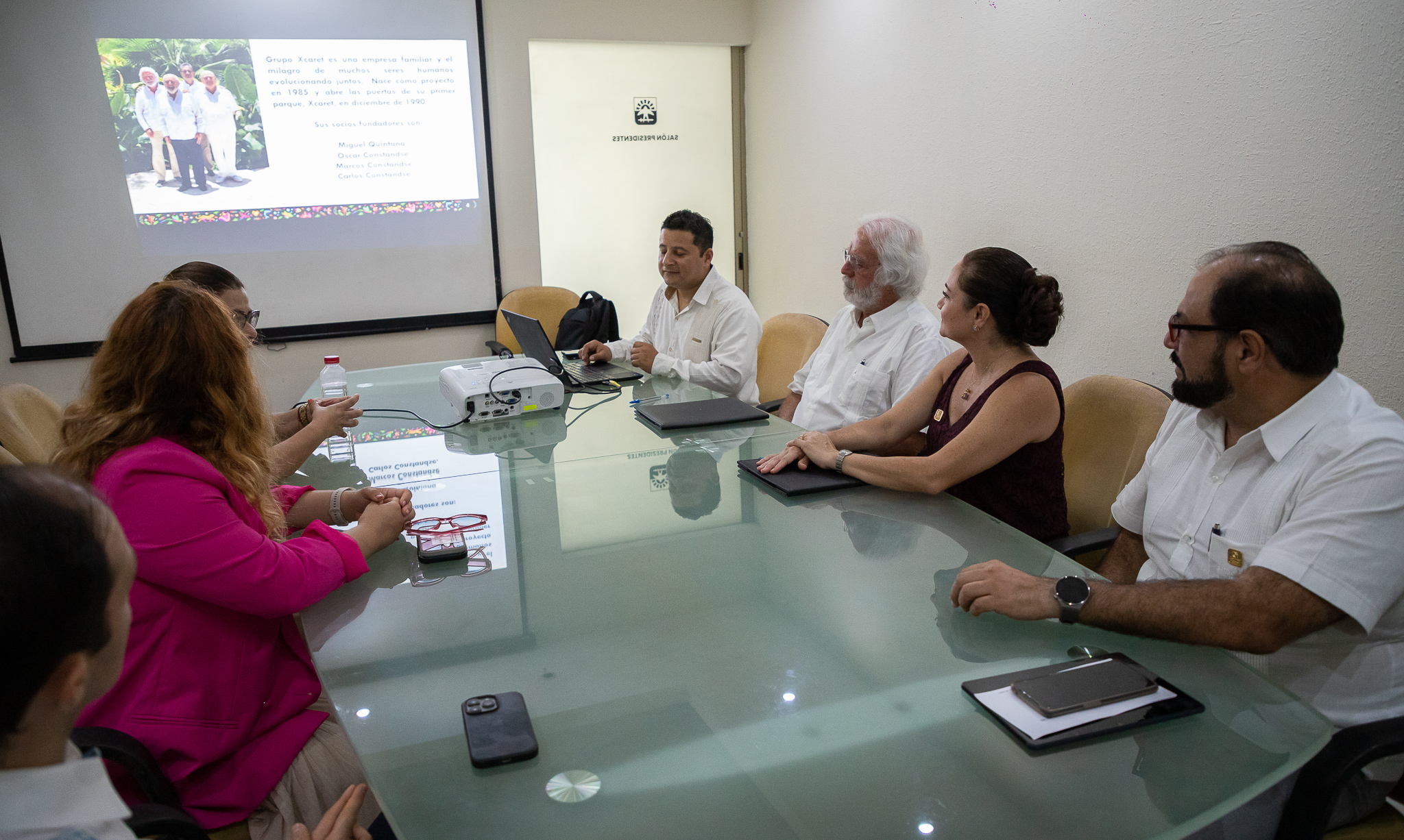 En la sala de juntas “Presidentes”, la munícipe agradeció al Grupo Xcaret por el interés de colaborar con la presente administración. “Muchas gracias por todo el apoyo que hemos tenido desde el inicio de nuestra administración por parte de su empresa. Acabamos de tener con mucho éxito la décima quinta edición de la Travesía Sagrada, la cual dio pie, con el apoyo de ustedes, para realizar el “Oráculo a Ixchel”, que seguramente será de mucha ayuda para impulsar la promoción de nuestra isla” dijo.