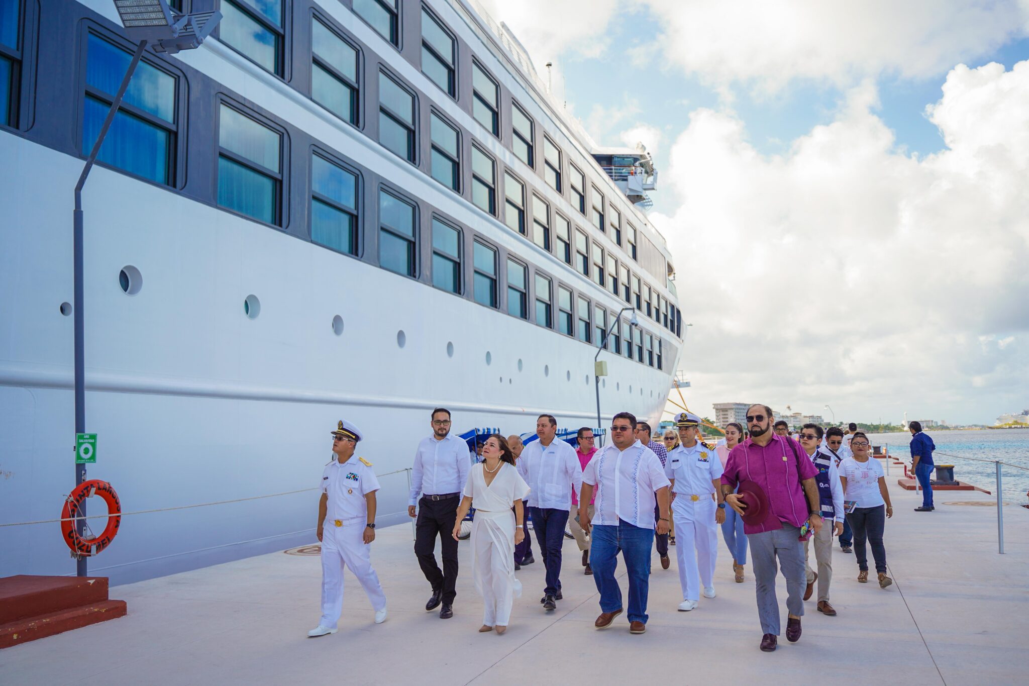En el crucero Viking Polaris atracado en el muelle de Punta Langosta, la munícipe, dio la bienvenida al capitán de la embarcación, agradeciéndole por incorporar al destino turístico en su ruta por todo el continente americano… “Por parte de los cozumeleños, sean todos bienvenidos a este pueblo mágico, esperamos que disfruten sus pasajeros y toda la tripulación de sus bellezas y deseamos que vuelvan pronto”, dijo.