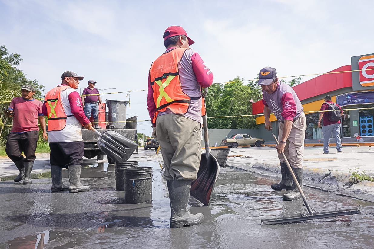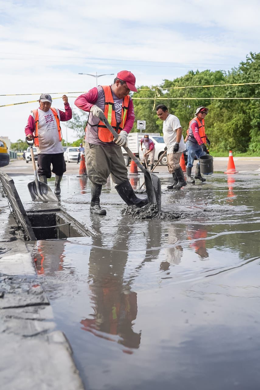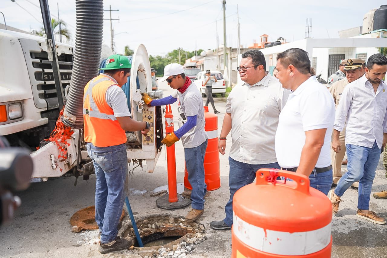 Junto con Seguridad Pública, Protección Civil y los regidores del Ayuntamiento de Cozumel, el presidente municipal recorrió la avenida Zamná con 85, en la colonia Maravilla, donde se realizaron labores de desazolve y profundización de pozos de absorción para prevenir encharcamientos.