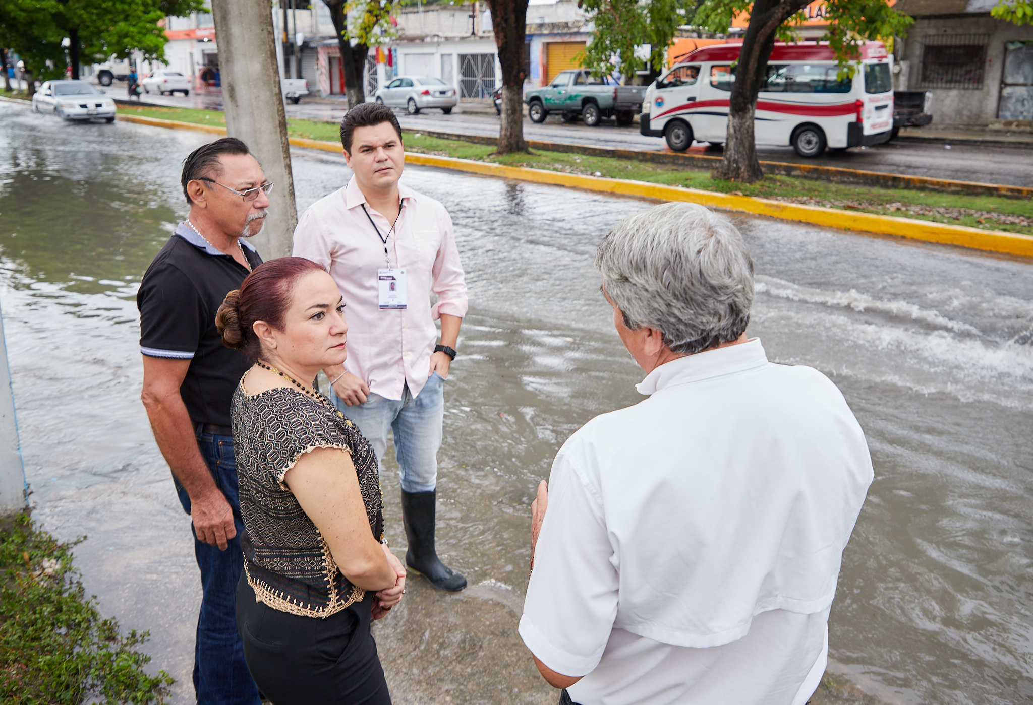 Acompañada del director de Servicios Públicos, Luis Ocampo Pedro y de Protección Civil, Paúl Quintero Marí, la edil realizó un recorrido sobre las principales avenidas y calles marcadas en el mapa de riesgo como zonas bajas susceptibles a tener mayor acumulación de agua durante los días de lluvia constante.