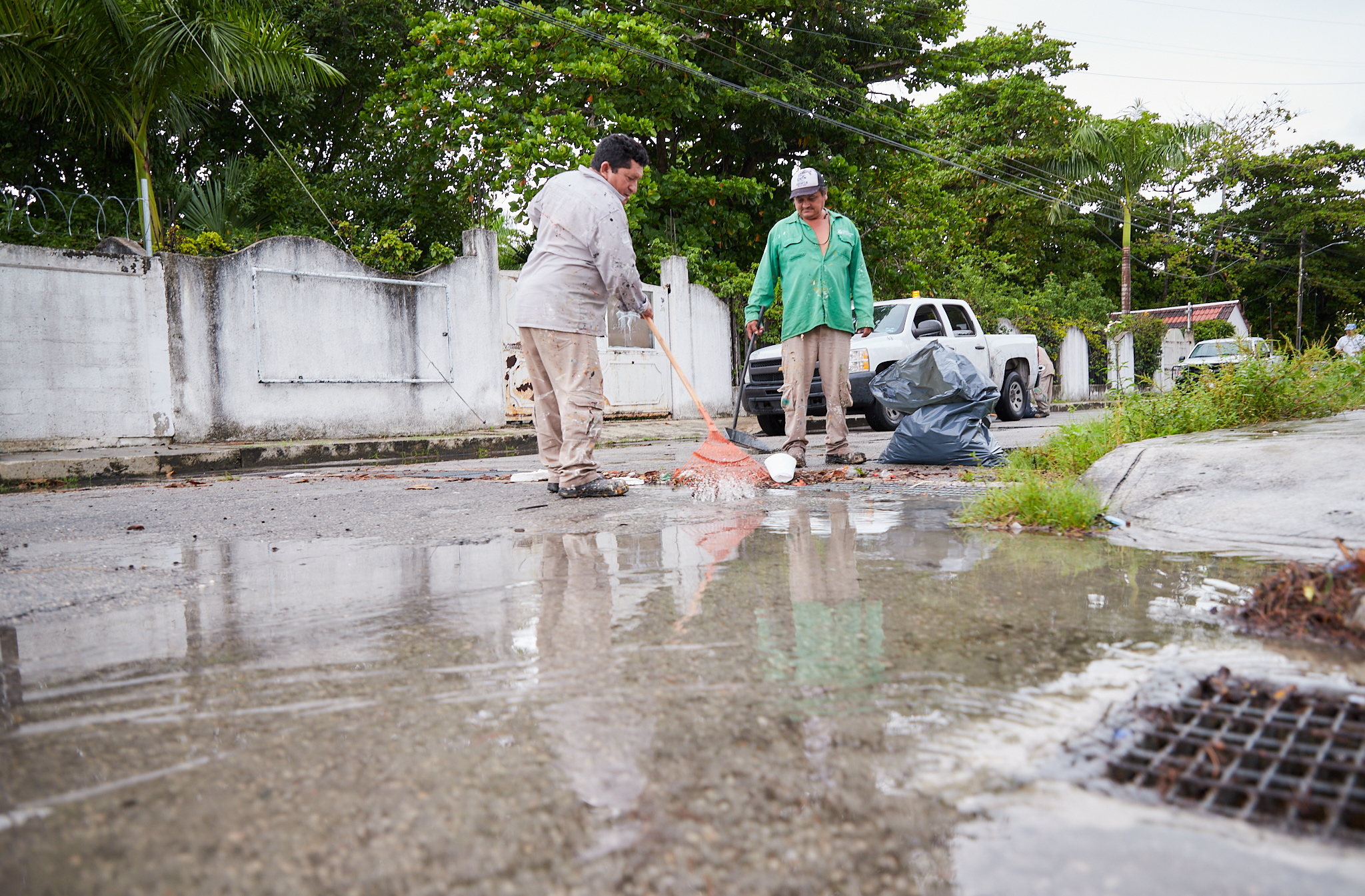 También acudió a la 35 avenida con calle 10 norte, a la calle 14 con 35 avenida y a la 30 avenida con 27 y 29, donde además del trabajo de los elementos de Protección Civil para evitar posibles inundaciones, las cuadrillas de Servicios Urbanos desde temprana hora se encontraban realizando limpieza de rejillas pluviales.