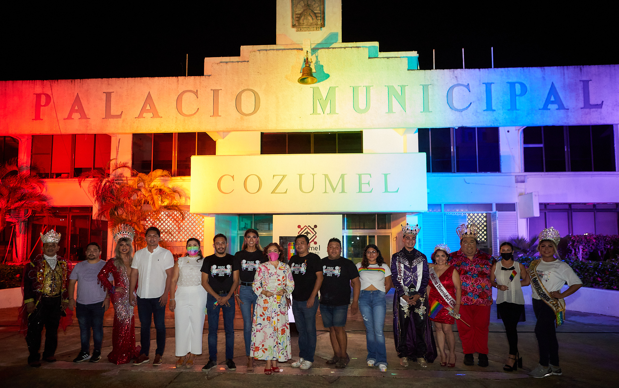 En un hecho sin precedentes, el palacio municipal se vistió de colores como muestra de apoyo a la comunidad LGBTTTIQ+ de Cozumel, en una emotiva ceremonia donde la presidenta municipal, Juanita Alonso Marrufo dijo estar convencida de apoyar y promover los derechos humanos para que el cambio cultural transforme la igualdad de la comunidad de la diversidad.
