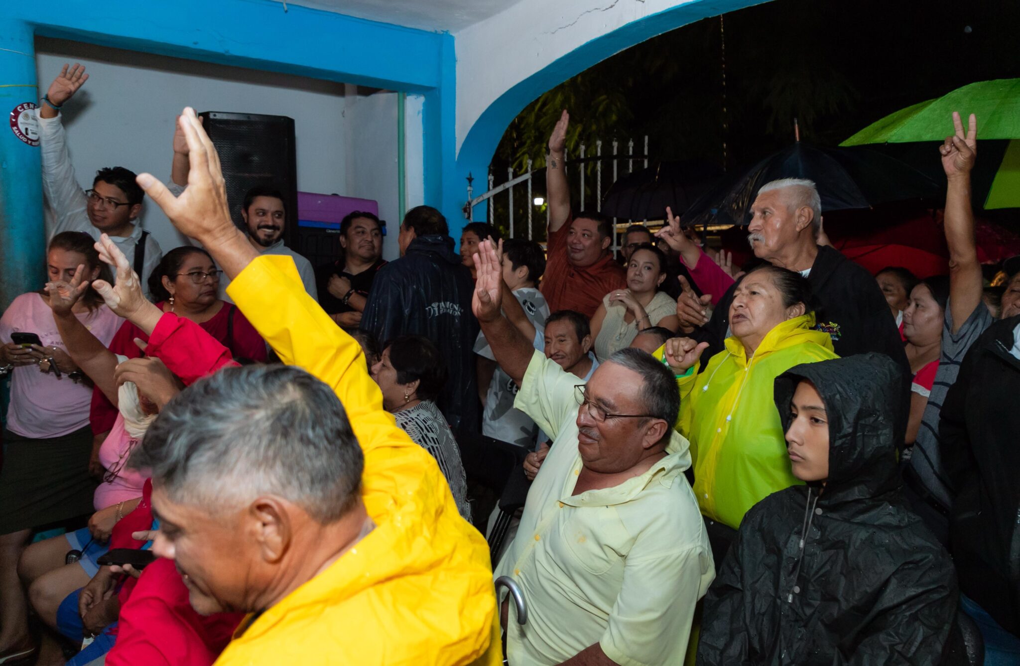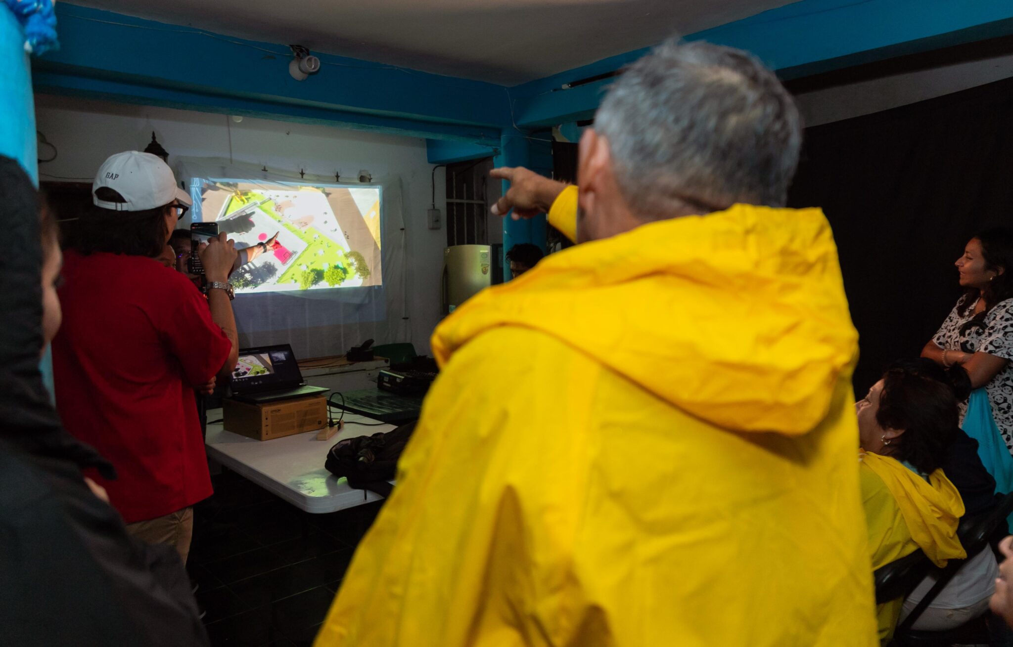 Reunidos en el hogar de la familia Poot Canché que amablemente prestó su espacio para esta reunión ante la lluvia que se registraba, las y los vecinos eligieron la propuesta número 2 que consiste en la creación de una cancha pequeña de basquetbol, plazoleta central, andadores, un espacio amplio de área verde con mesas de picnic y un área para juegos infantiles.