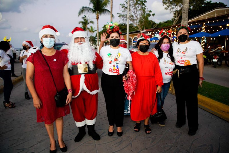 El derrotero navideño fue encabezado por la presidenta honoraria del DIF Municipal Susana del Mar Coral Villanueva y la directora del organismo, Margarita del Rosario Vázquez Barrios, partiendo del malecón frente al monumento al Mestizaje hasta llegar frente al Palacio Municipal, donde se presentó una coreografía de “SIA Cozumel A.C.” en lenguaje de señas y la Orquesta “Corazón Caribe” amenizó la velada.