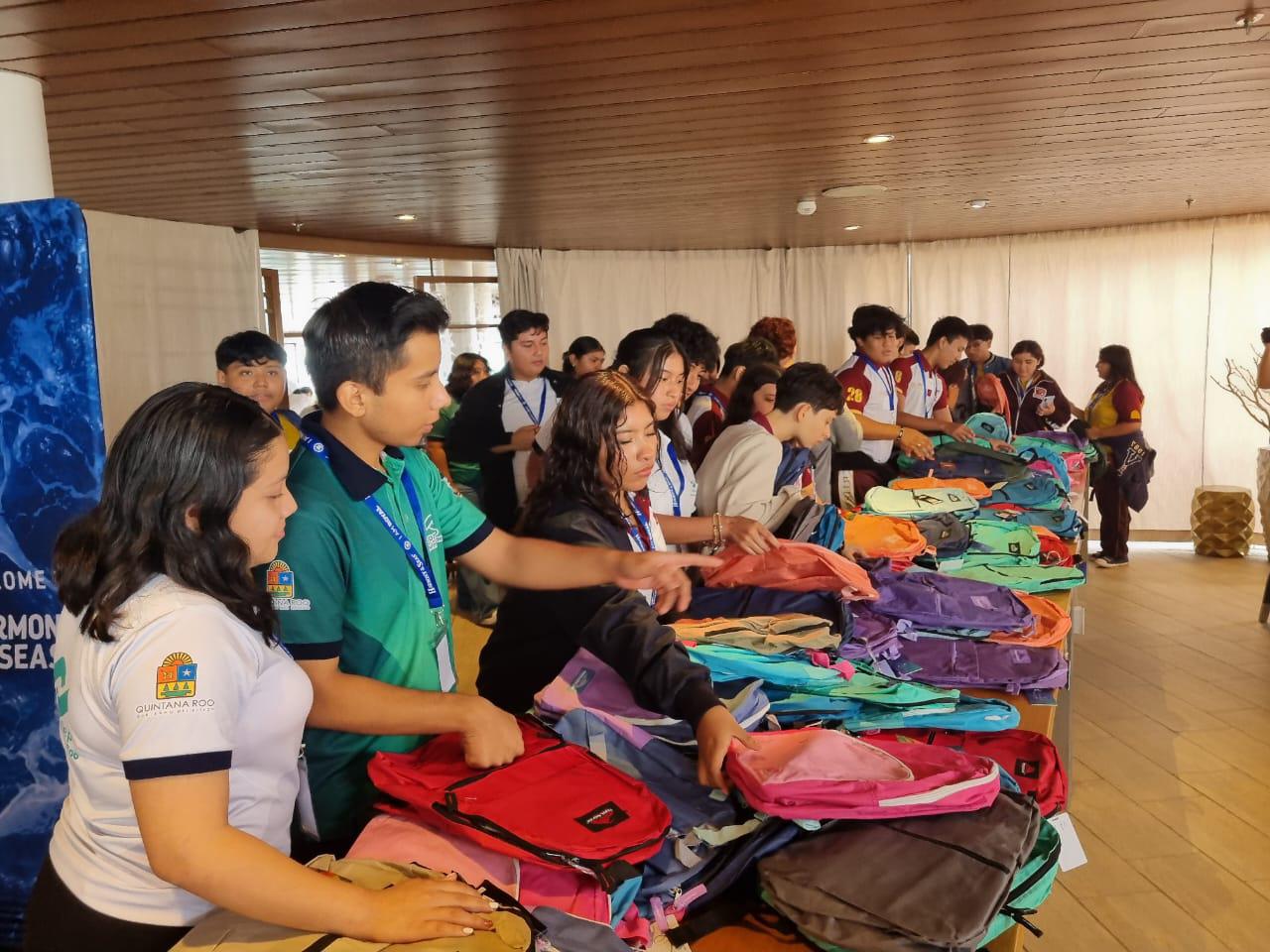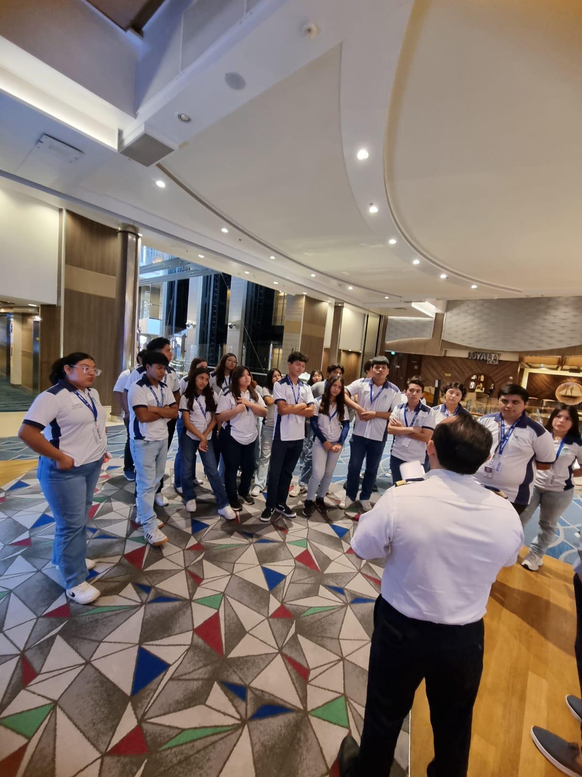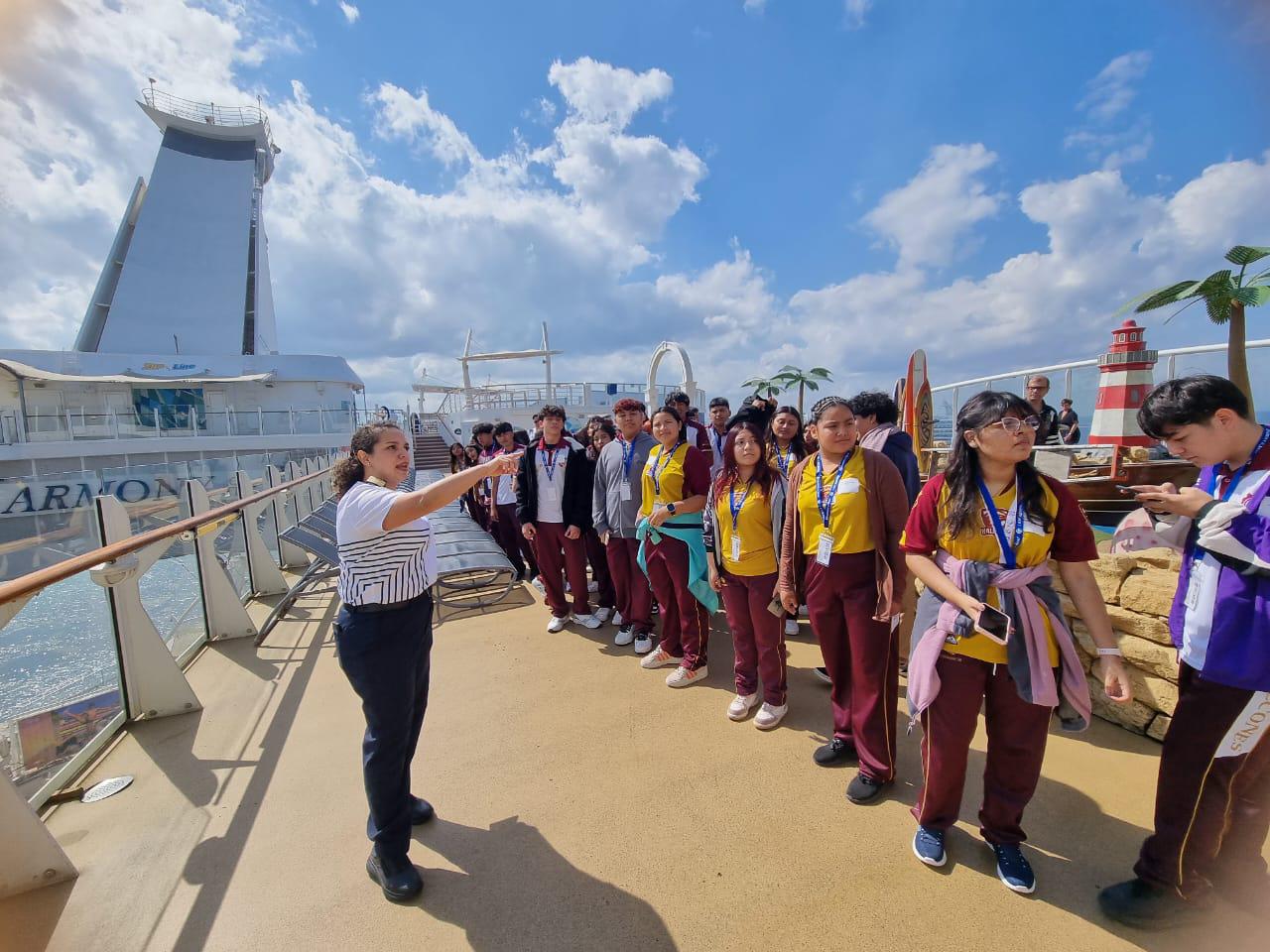 Los alumnos de nivel medio superior del Conalep, Colegio de Bachilleres, Centro de Bachillerato Tecnológico, Industrial y de Servicios (CEBTIS) y Centro de Estudios Tecnológicos del Mar (CETMAR), fueron recibidos a bordo del crucero para realizar una visita guiada que les permitió conocer su historia, funcionamiento y la logística interna de este hotel flotante.