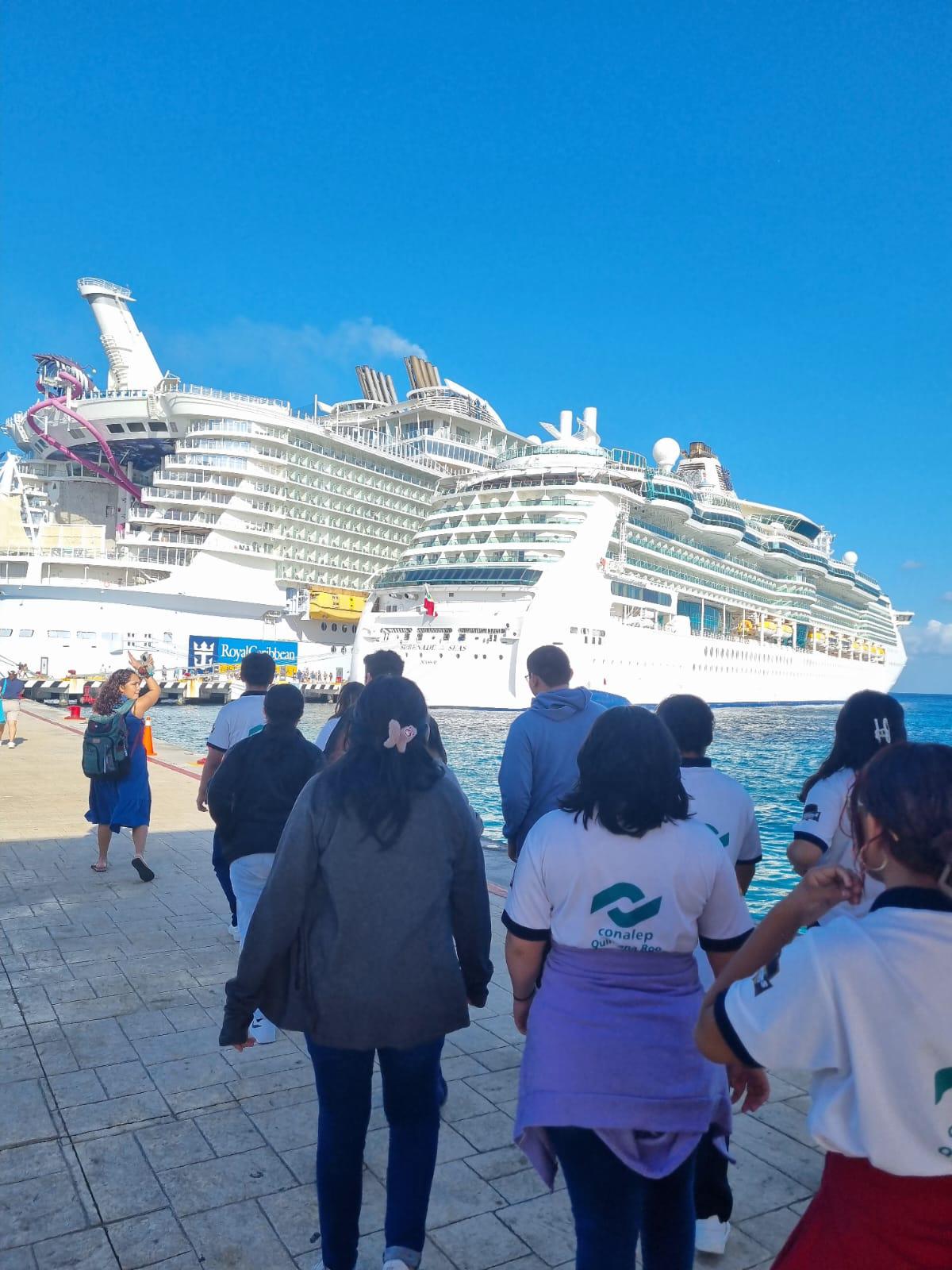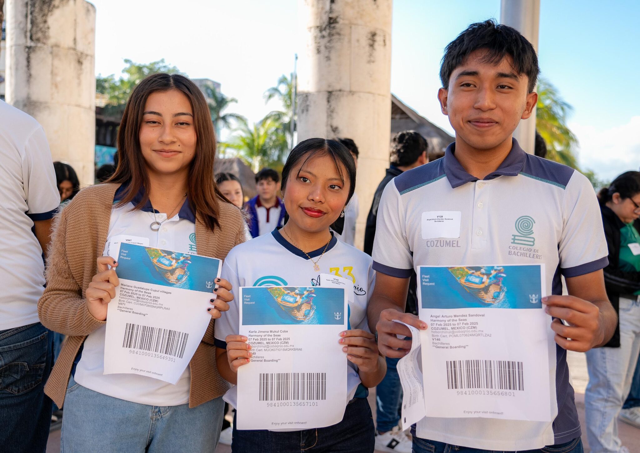 Por primera vez en la historia, estudiantes de las cuatro preparatorias públicas de Cozumel tuvieron la oportunidad de conocer de cerca las instalaciones de uno de los cruceros más grandes y modernos del mundo, el “Harmony of the Seas” de la línea naviera Royal Caribbean, en las que se busca acercar a los jóvenes a experiencias de aprendizaje práctico y significativo.