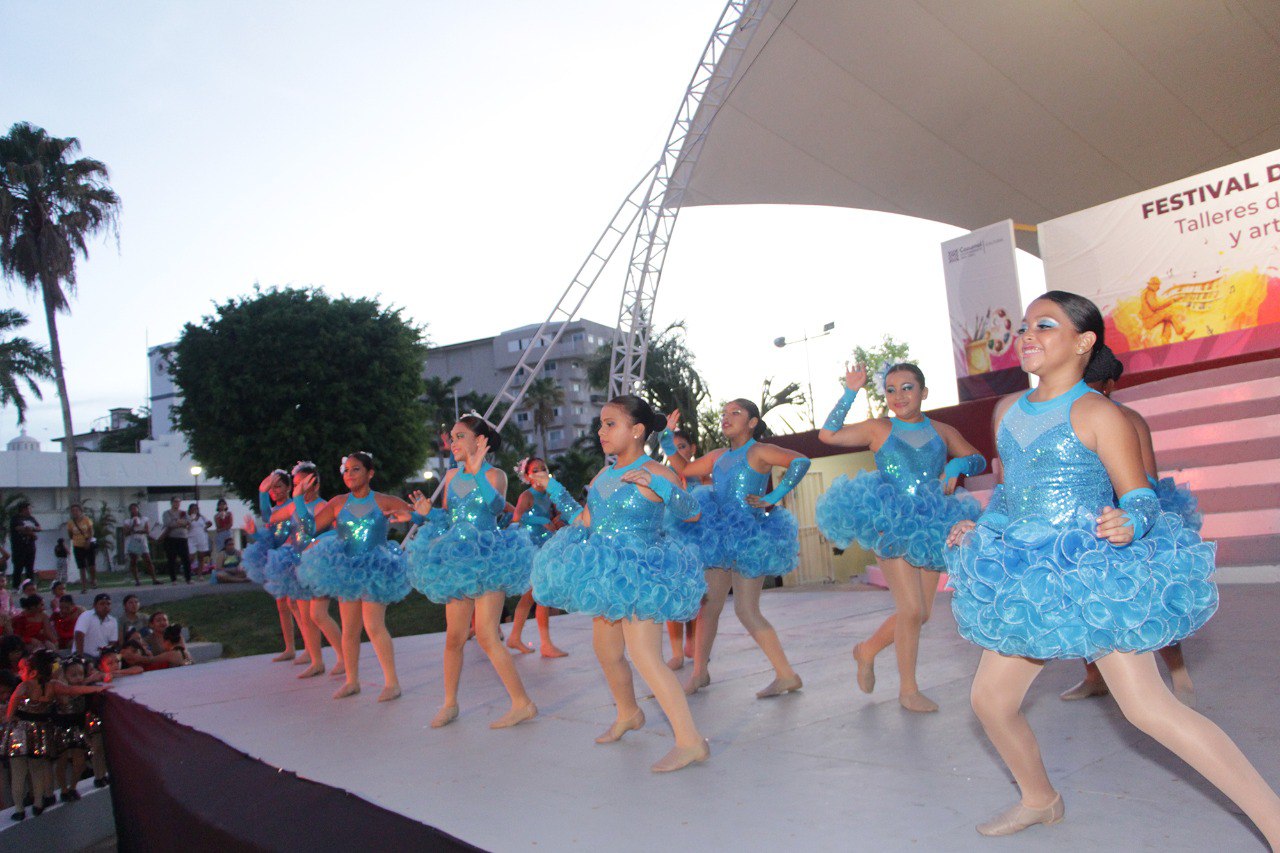 Alrededor de 90 niños, niñas y jóvenes culminaron su ciclo de aprendizaje 2022-2023 de los talleres de “Jazz”, “Bailes Caribeños” y “Bailes Latinos”, que imparte el Gobierno Municipal a través de la subdirección de Cultura, quienes presentaron lo aprendido a través del Festival de Fin de Curso que se llevó a cabo en el anfiteatro del parque Quintana Roo.