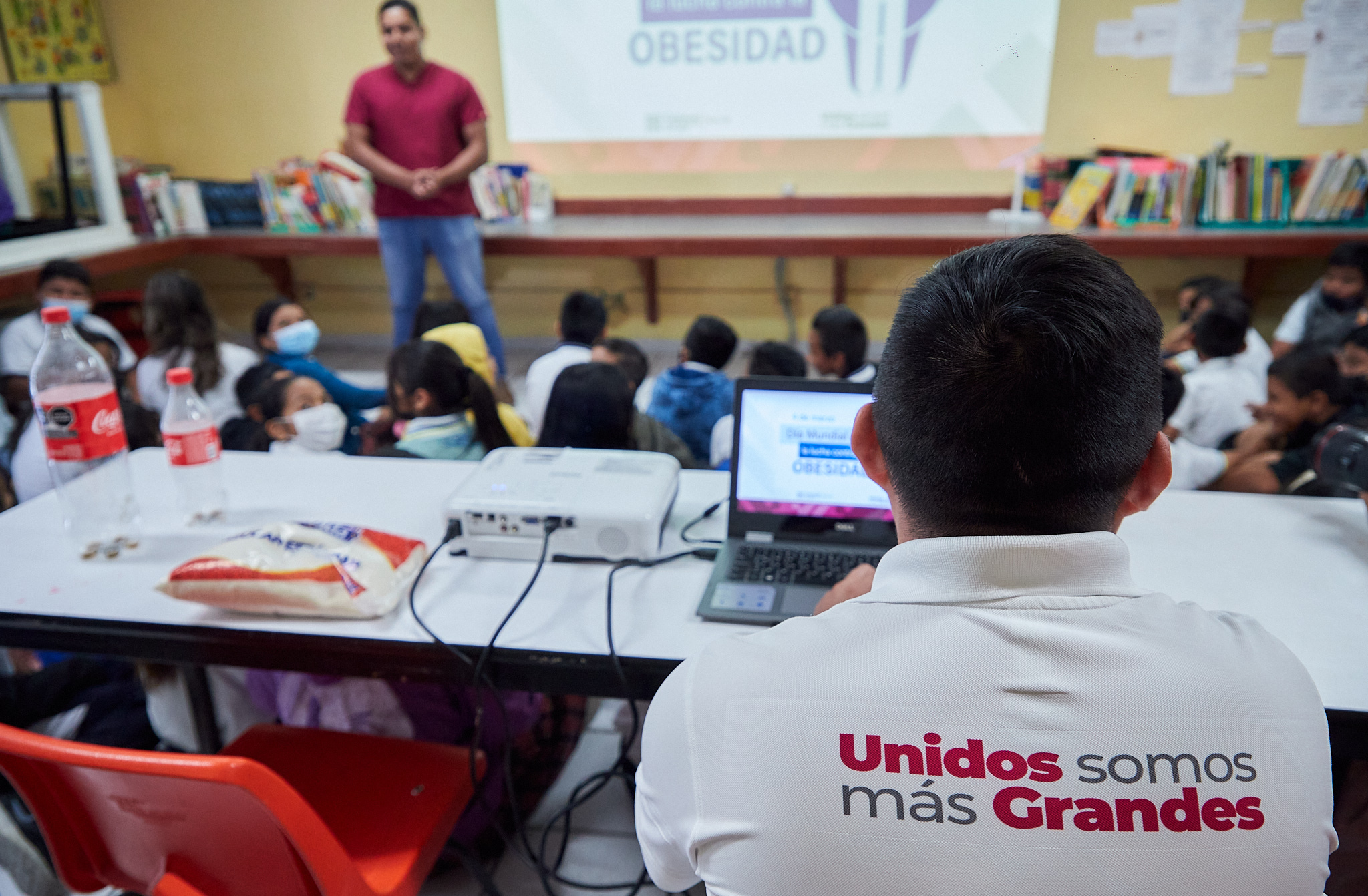 En el marco del Día Mundial de la lucha contra la obesidad que se conmemora cada 4 de marzo, la subdirección de salud llevó a cabo actividades dirigidas a estudiantes de sexto grado de primaria de la escuela Sara María Rivero, tal como pláticas de nutrición y activación física, con lo cual se puede prevenir esta condición.