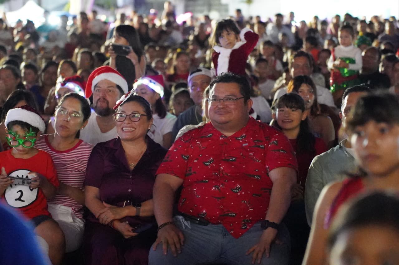 En un emotivo mensaje, el presidente municipal José Luis Chacón Méndez expresó que esta celebración fue organizada con cariño para todas y todos los cozumeleños, destacando la importancia de fortalecer la convivencia familiar en esta época del año. Señaló que estas actividades permiten reunir a niñas, niños, jóvenes y adultos en un ambiente seguro y fraterno, donde la comunidad se cuida, comparte y recuerda lo valioso que es tener cerca a mamá, papá, abuelos e hijos. Afirmó que la Navidad representa esperanza, amor y unión, y que el inicio de esta temporada tan especial llenará a Cozumel de momentos que todas y todos disfrutarán, siendo las niñas y los niños las verdaderas estrellas de este festival.