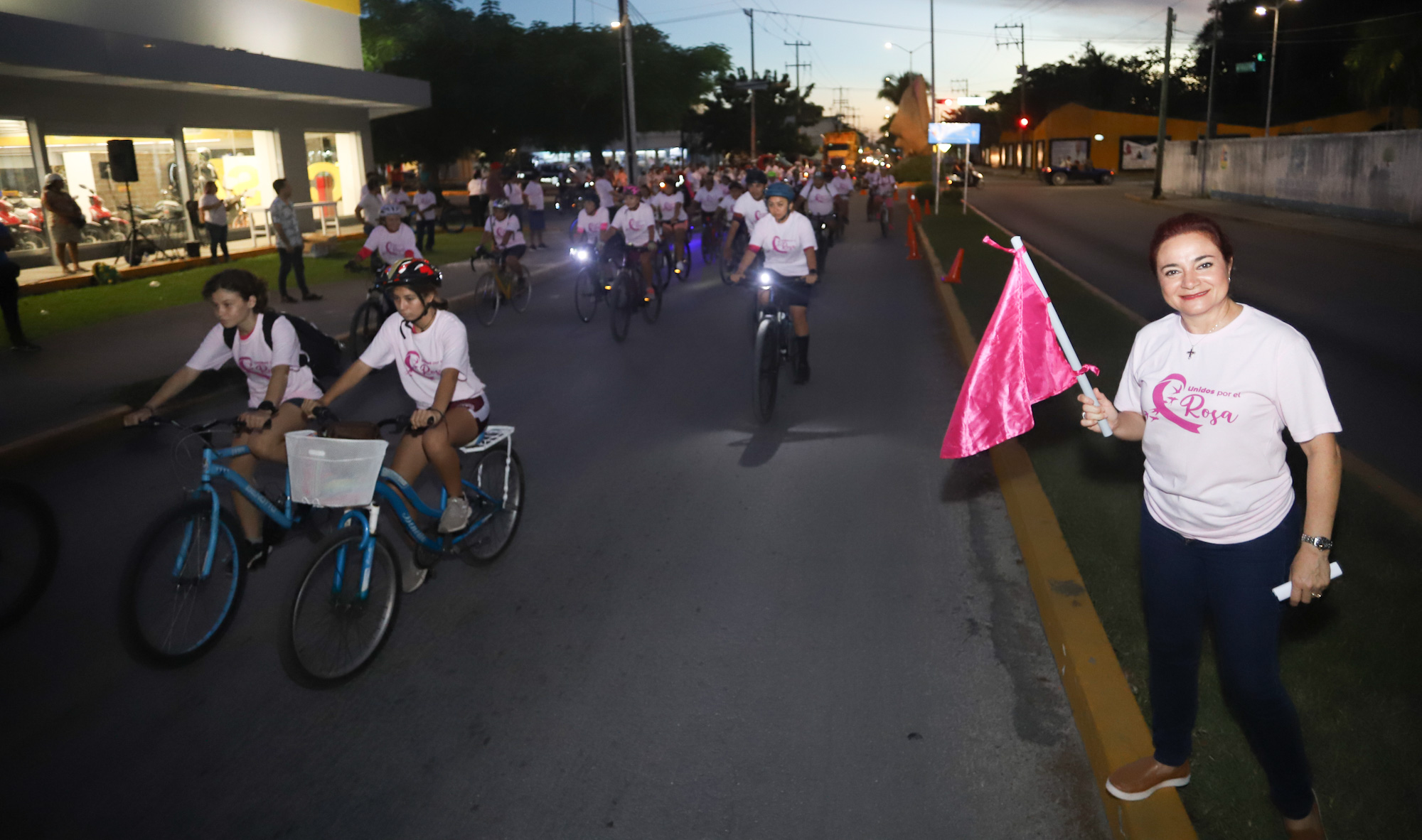 Con el propósito de crear conciencia sobre el cáncer de mama y la importancia de su detección oportuna, la presidenta municipal, Juanita Alonso Marrufo encabezó el banderazo de salida para la “Rodada Rosa 2022” organizada por el Sistema para el Desarrollo Integral de la Familia (DIF) Cozumel y el Gobierno Municipal a través de la dirección de Deportes y Atención a la Juventud.