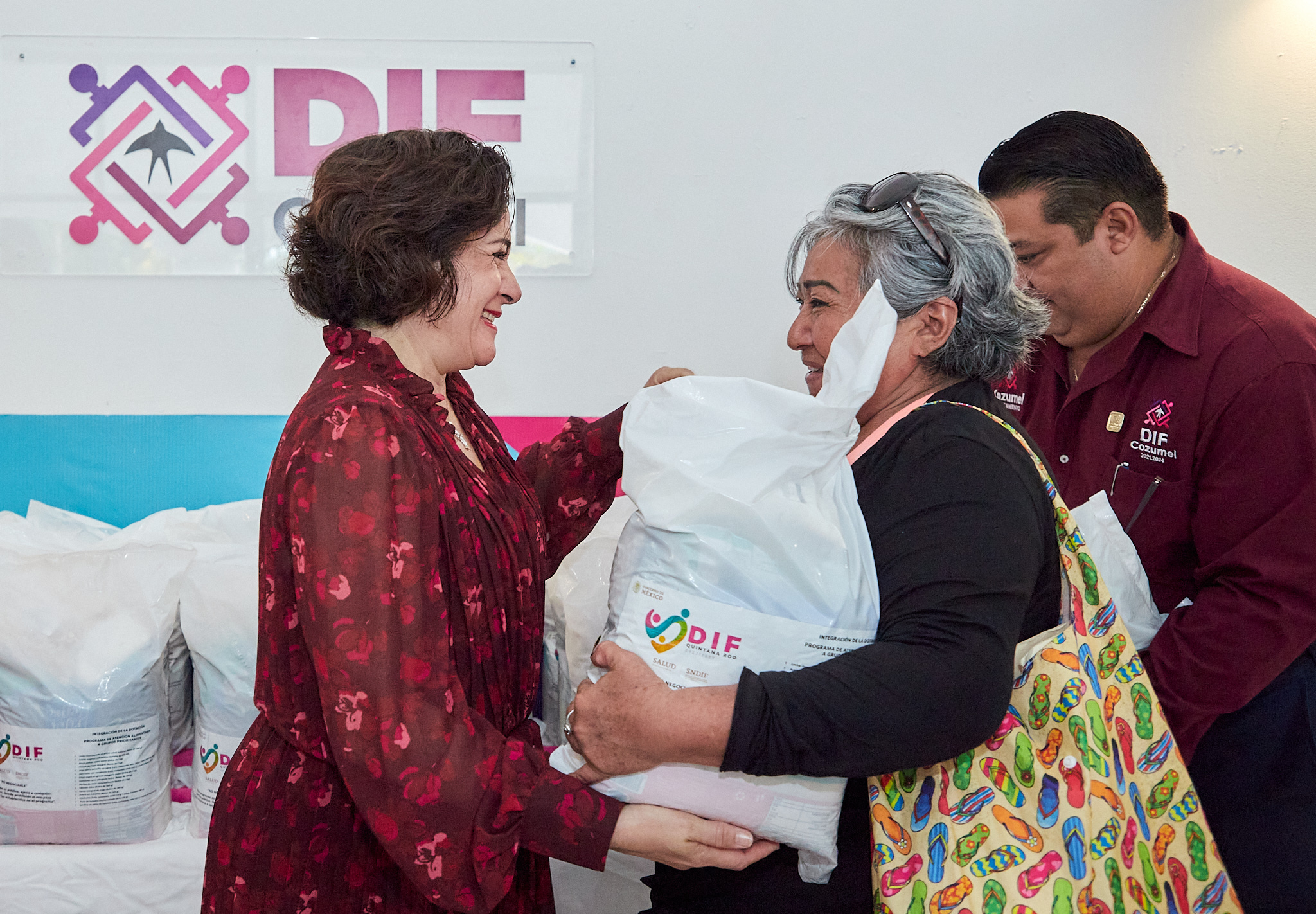 Acompañada también por el director del DIF Cozumel, Raúl Martín Ceh Fernández, la primera autoridad de la isla resaltó que en esta administración el bienestar y la salud de los que integran las familias es una prioridad incuestionable que se atiende por medio de los diferentes programas y acciones, como con este que maneja el sistema DIF municipal donde se apoya con despensas a las familias que más lo necesitan.