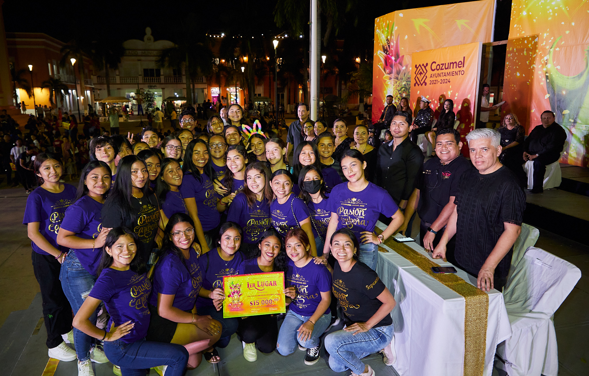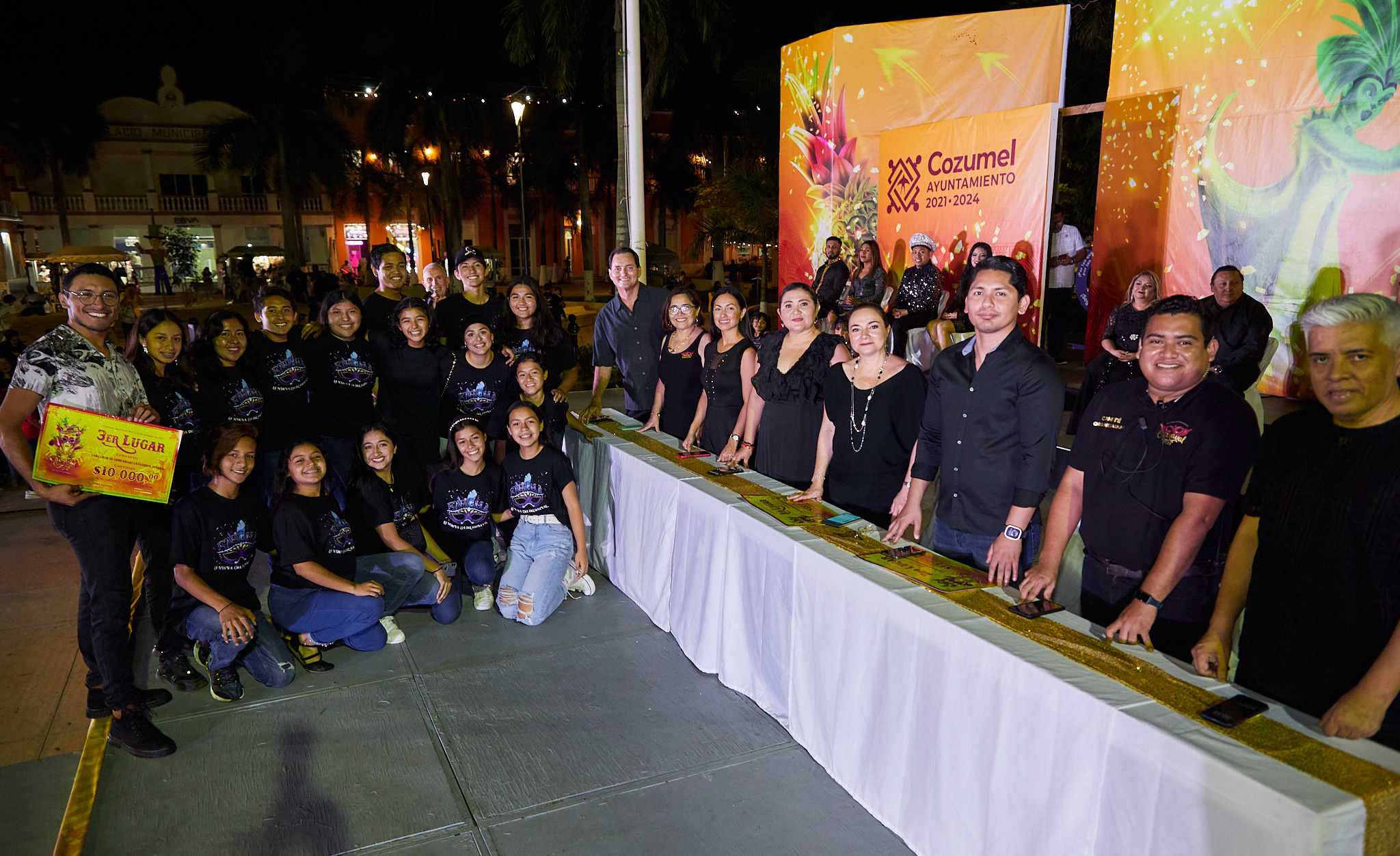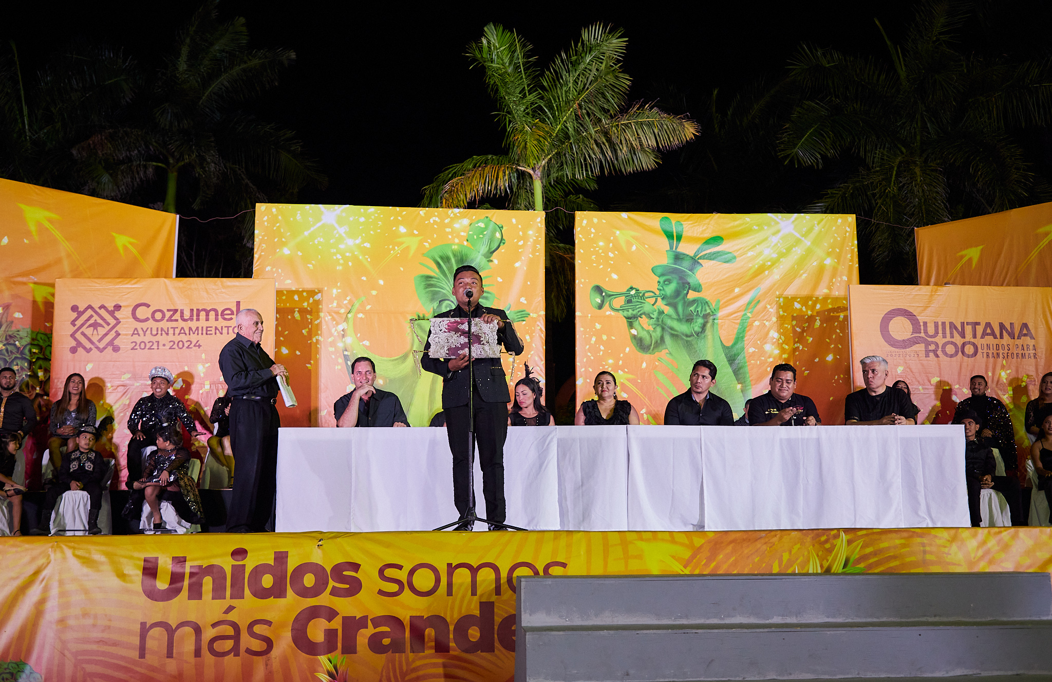 El escenario del parque Benito Juárez fue el lugar donde se llevó a cabo el evento carnestolendo encabezado por la presidenta municipal, Juanita Alonso Marrufo, quien estuvo acompañada por la honoraria del sistema DIF Cozumel, Susana del Mar Coral Villanueva; el oficial mayor, Alejandro Marchán Payán y el director de eventos generales, Gerardo Chan Cárdenas, al igual que los reyes y reinas de las diferentes categorías.