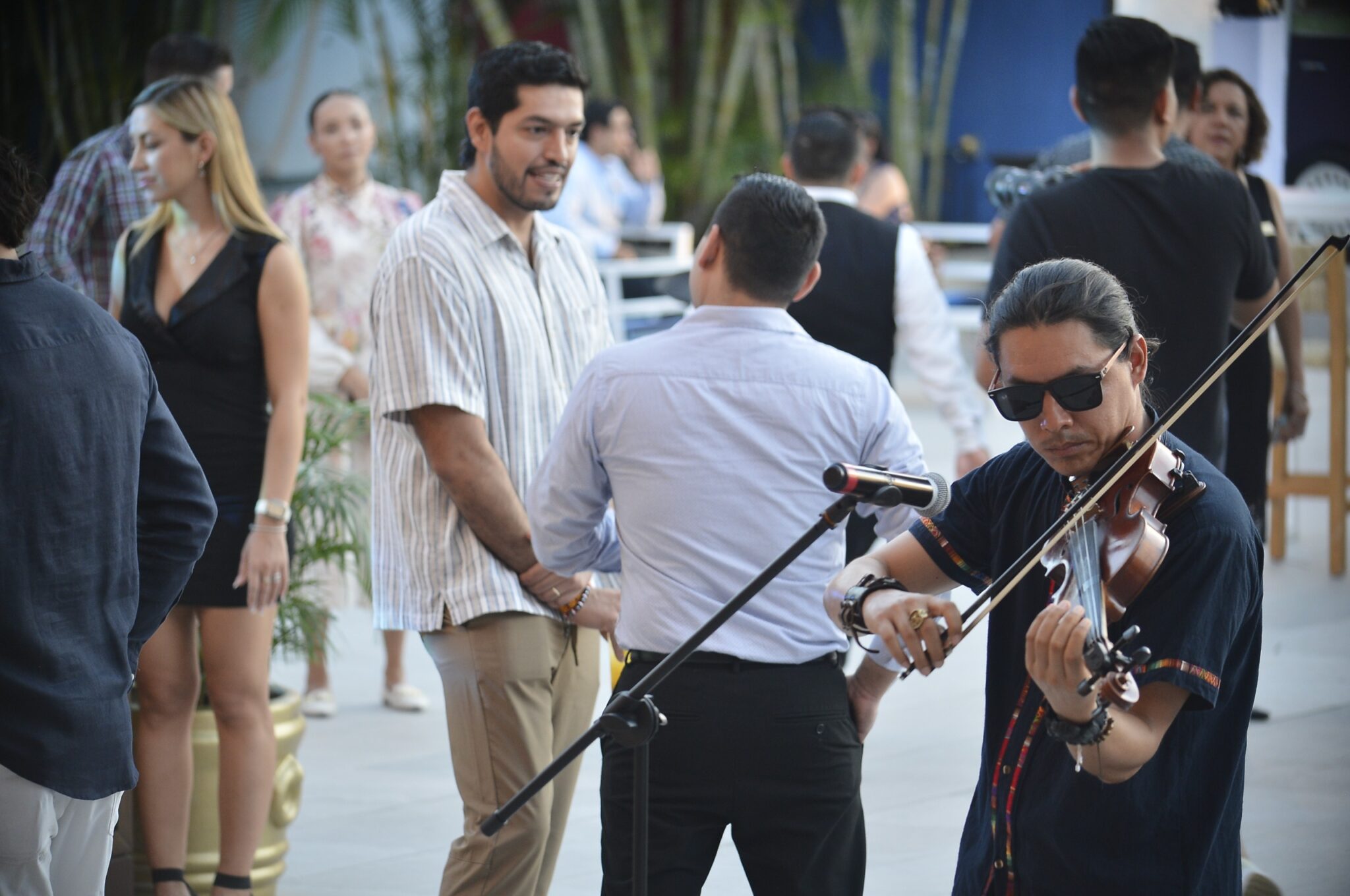 Los asistentes saborearon bebidas y bocadillos gourmet en una velada que inició por la tarde y se prolongó hasta la noche, amenizada por un violinista que interpretó una mezcla de música clásica y moderna.
