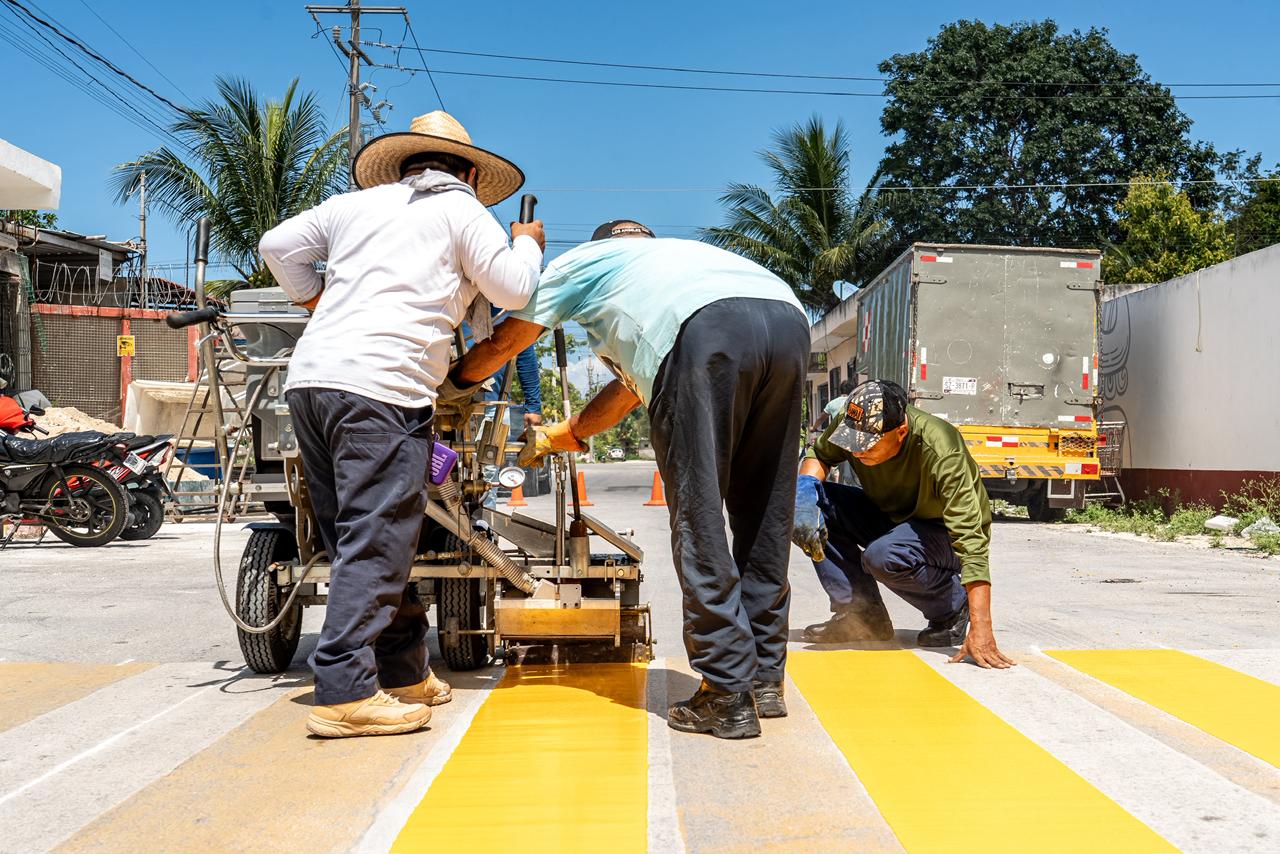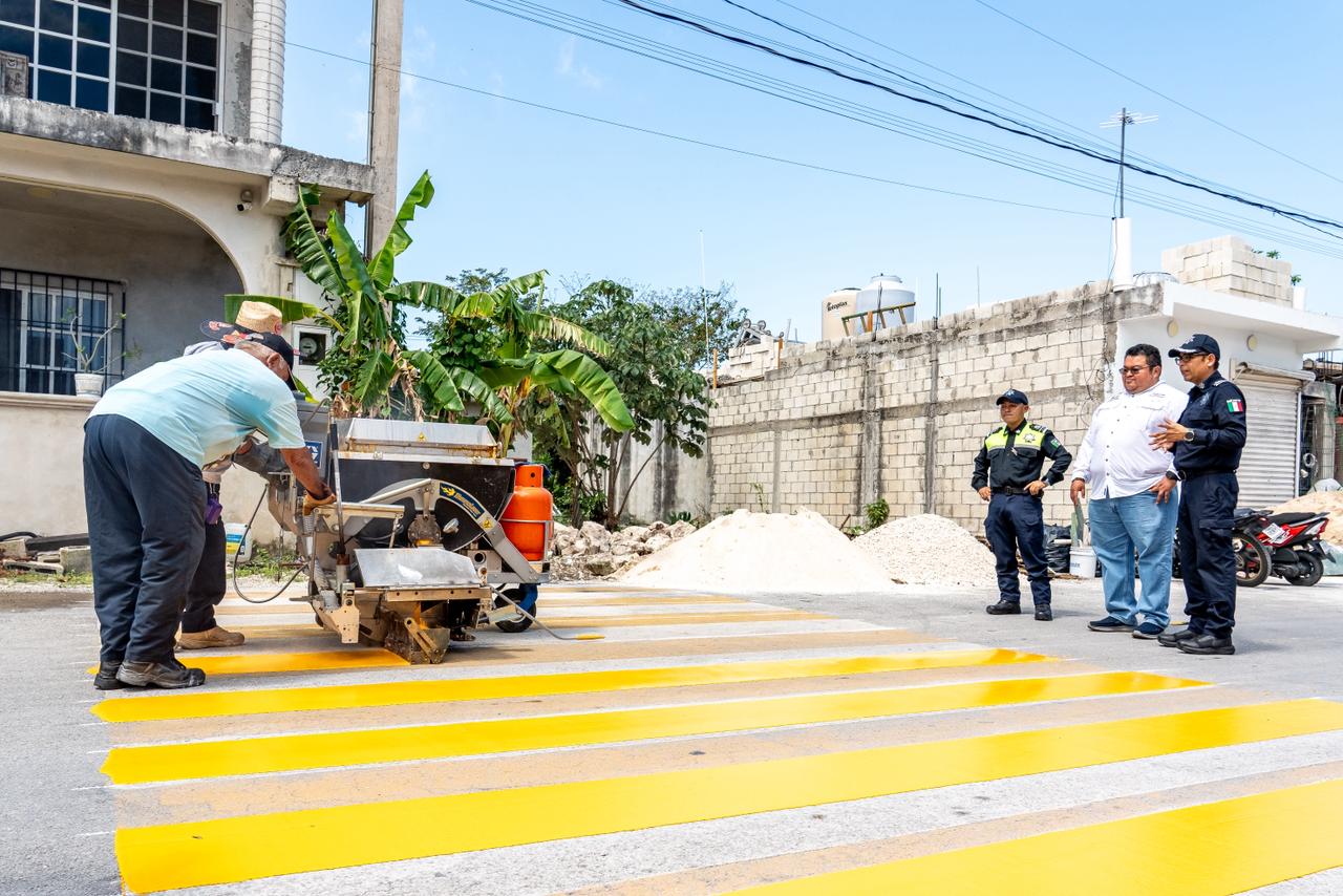 El gobierno municipal que encabeza José Luis Chacón Méndez realizó trabajos de marcaje de cruces peatonales en escuelas públicas de la isla, utilizando pintura termoplástica con microesferas que permite mayor visibilidad y reflejancia con la luz de los vehículos, con el objetivo de fortalecer la seguridad vial y proteger a niñas, niños, padres de familia y personal educativo durante los horarios de entrada y salida.