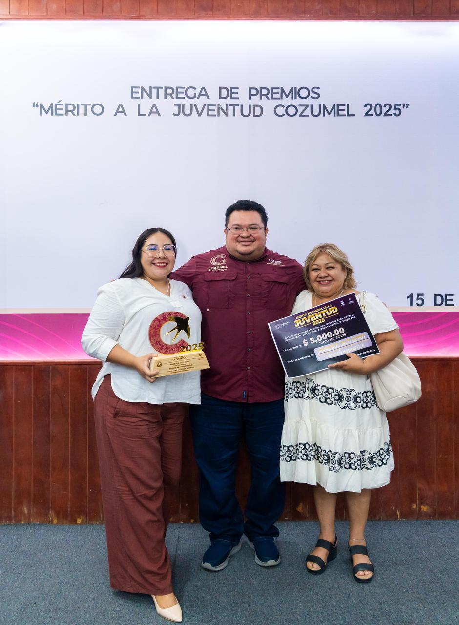 Con el objetivo de reconocer y motivar a las y los jóvenes que destacan por su dedicación, esfuerzo y aportaciones en beneficio de la comunidad, el gobierno municipal, que encabeza José Luis Chacón Méndez, a través de la subdirección de Atención a la Juventud, llevó a cabo la entrega del Premio Municipal Cozumel “Mérito a la Juventud 2025” en el salón Municipios.