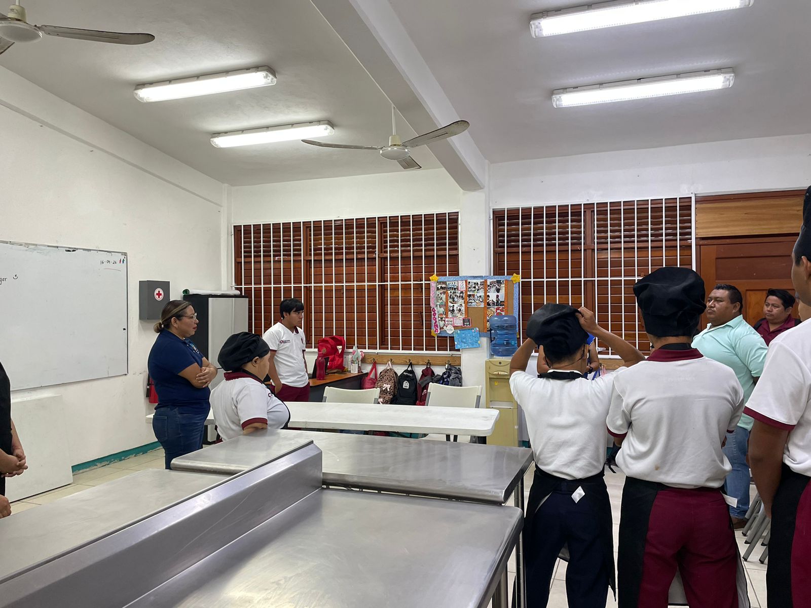 Como parte de estas acciones, el COMUMU realizó una visita al CAM Laboral Cozumel con la finalidad de tener un acercamiento directo con las y los alumnos, generando un espacio de diálogo e interacción que permitió fortalecer la colaboración con la directora del plantel, María Guadalupe Damas.