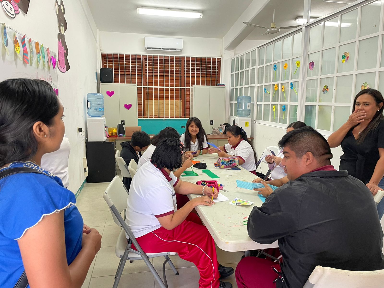 Mayin Mejía Ku, jefa del Departamento del Comité Municipal de la Mujer, señaló que esta iniciativa tiene como objetivo fomentar la inclusión de las y los estudiantes en todos los entornos, promoviendo la eliminación de estereotipos y barreras sociales que limitan su desarrollo integral, así como impulsar una cultura de respeto e igualdad. Asimismo, destacó que esta colaboración permitirá que las y los alumnos puedan integrarse y participar en otras actividades adicionales que ofrece el COMUMU, ampliando sus oportunidades de desarrollo y aprendizaje.