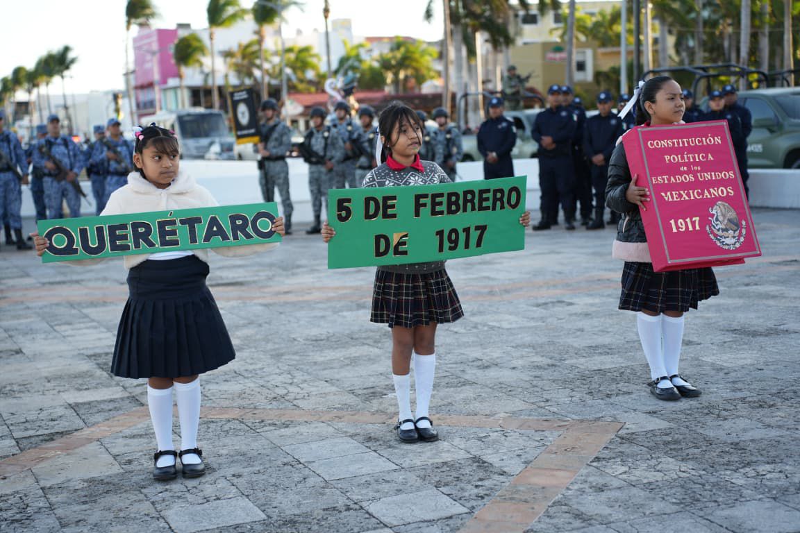 Durante la ceremonia, el alumno Ian Adrián Castillo Cetzal, de la escuela primaria “Bernardino Mezo Méndez”, turno matutino, realizó el juramento a la Bandera, mientras que el ciudadano Hidalgo López Aguilar dio lectura a las efemérides correspondientes al mes de febrero. De igual manera, alumnas y alumnos de cuarto grado, grupo “B”, de la misma institución educativa, a cargo de la profesora Paula Fabiola Góngora Ayora, presentaron una lectura dramatizada alusiva a esta importante conmemoración cívica.
