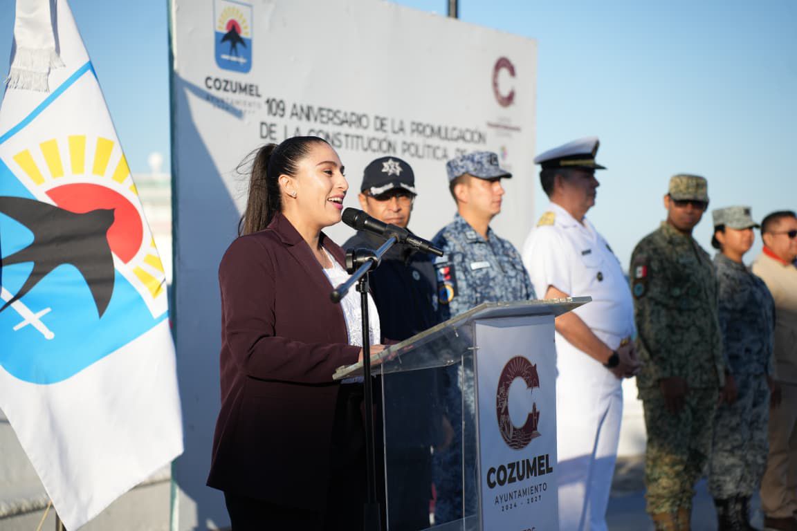 En representación del presidente municipal, asistió la síndico Daniela Ayala Blanco, quien en su mensaje destacó que el 5 de febrero representa una de las fechas más significativas para la vida institucional del país, al recordar la promulgación de la Constitución de 1917, documento que no solo establece un conjunto de leyes, sino que es resultado de luchas históricas y de los ideales de justicia, libertad e igualdad que dieron origen a un México más justo y democrático. Subrayó que esta Carta Magna fue pionera en el reconocimiento de derechos sociales como la educación, el trabajo digno, la propiedad de la tierra y la soberanía nacional, sentando las bases del Estado de Derecho, la división de poderes y la participación ciudadana.