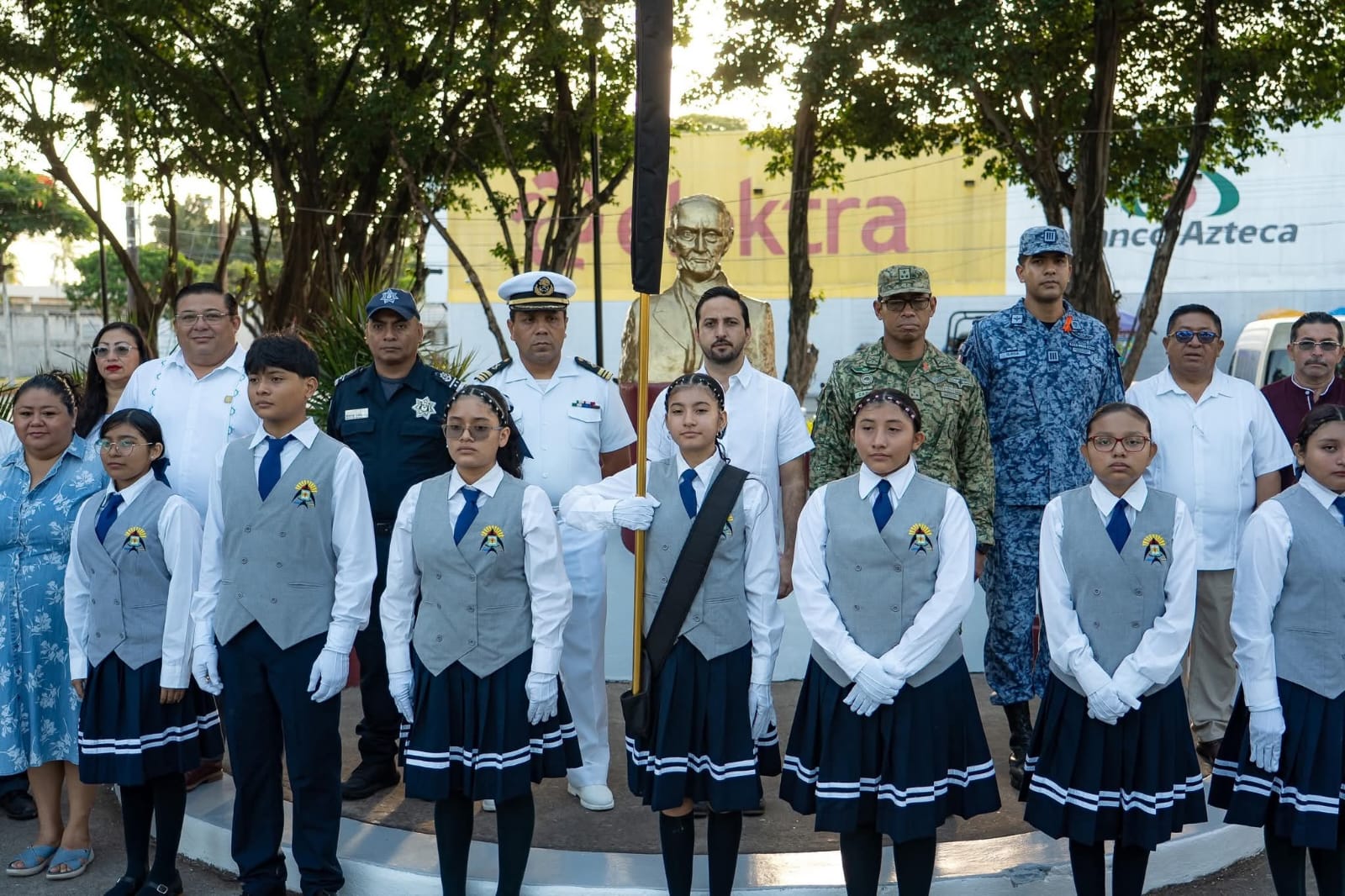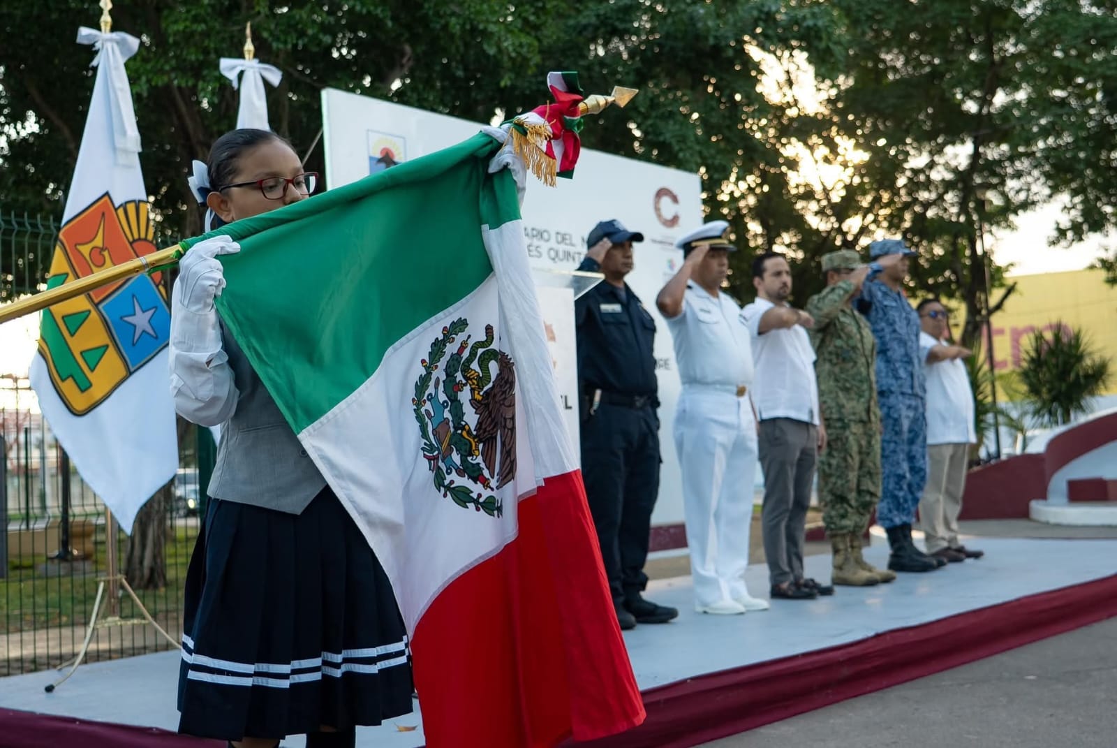 En el evento también estuvieron presentes el Subdirector de Educación y Biblioteca Pública, Saturnino Magaña Valle, representantes de las Fuerzas Armadas, la banda de guerra “Águila Nacional”, la escolta y alumnado de la Escuela secundaria general Andrés Quintana Roo.