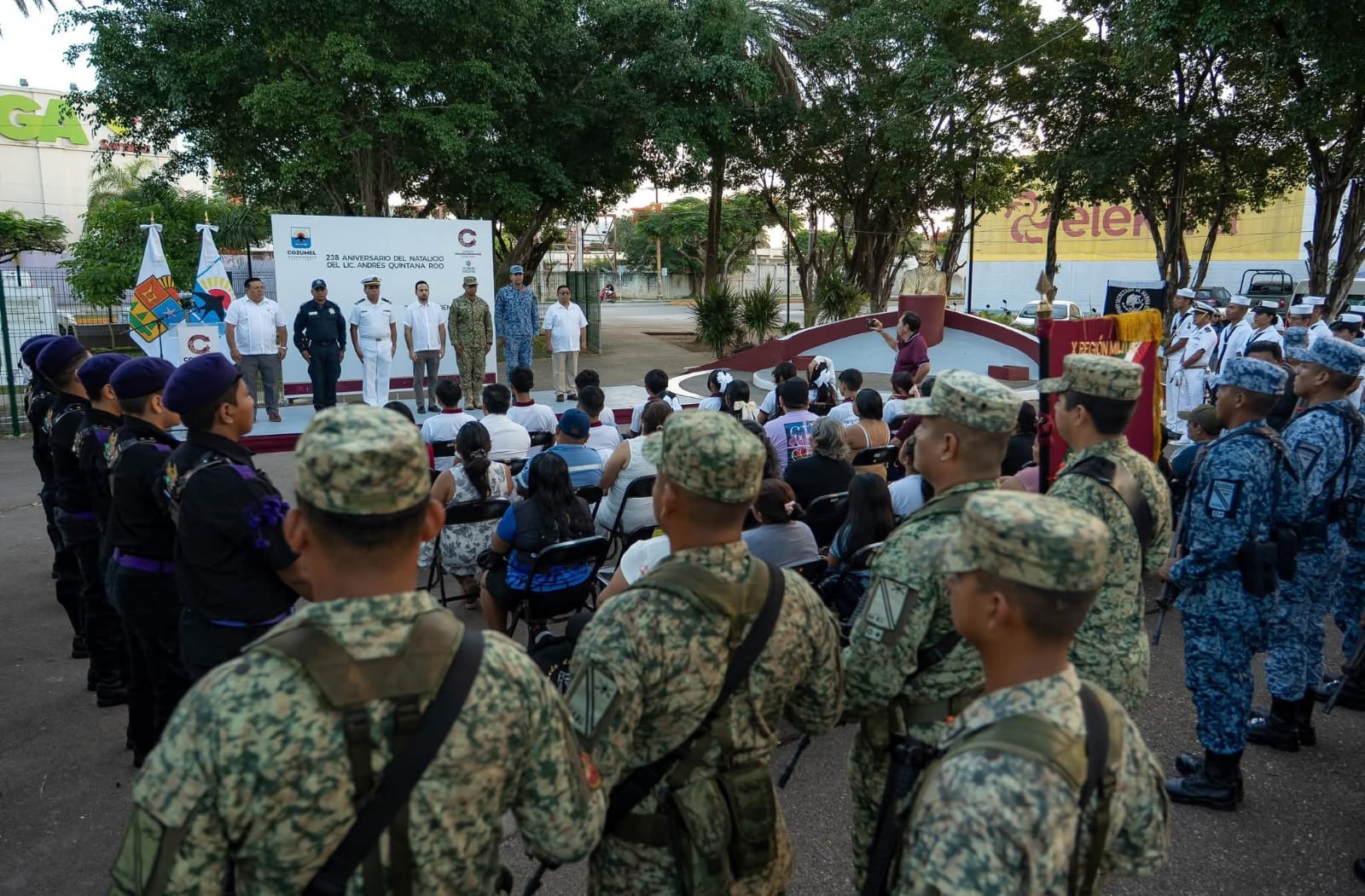 El Gobierno Municipal que encabeza, José Luis Chacón Méndez, llevó a cabo la ceremonia cívica en conmemoración del 238 Aniversario del natalicio del Lic. Andrés Quintana Roo, evento que tuvo lugar en el emblemático parque que lleva el apellido del ilustre personaje de la historia mexicana.