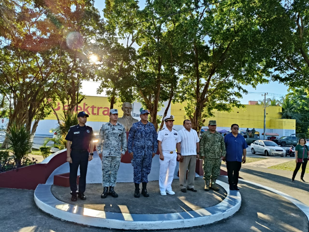 El acto cívico culminó con la acostumbrada fotografía oficial en el busto de Andrés Quintana Roo, donde autoridades educativas y municipales rindieron homenaje a este gran personaje de la historia nacional.
