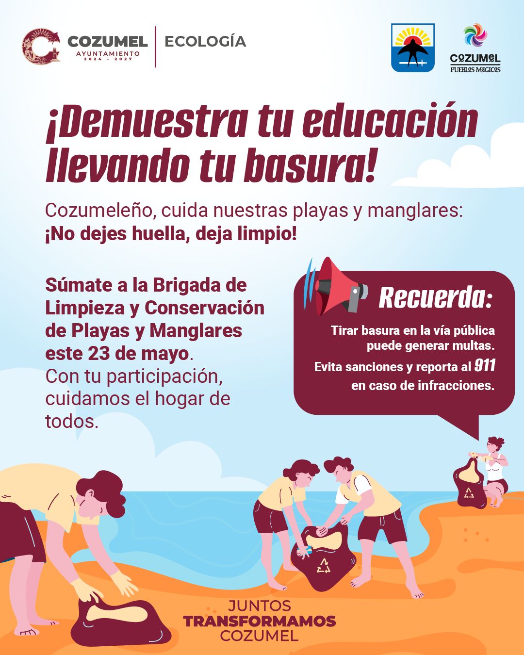 En el marco de la conmemoración del Día Mundial de la Tortuga, el Gobierno Municipal de Cozumel a través de la Subdirección de Ecología, invita a la ciudadanía a participar en una jornada de limpieza masiva de playas que se llevará a cabo el próximo viernes 23 de mayo.