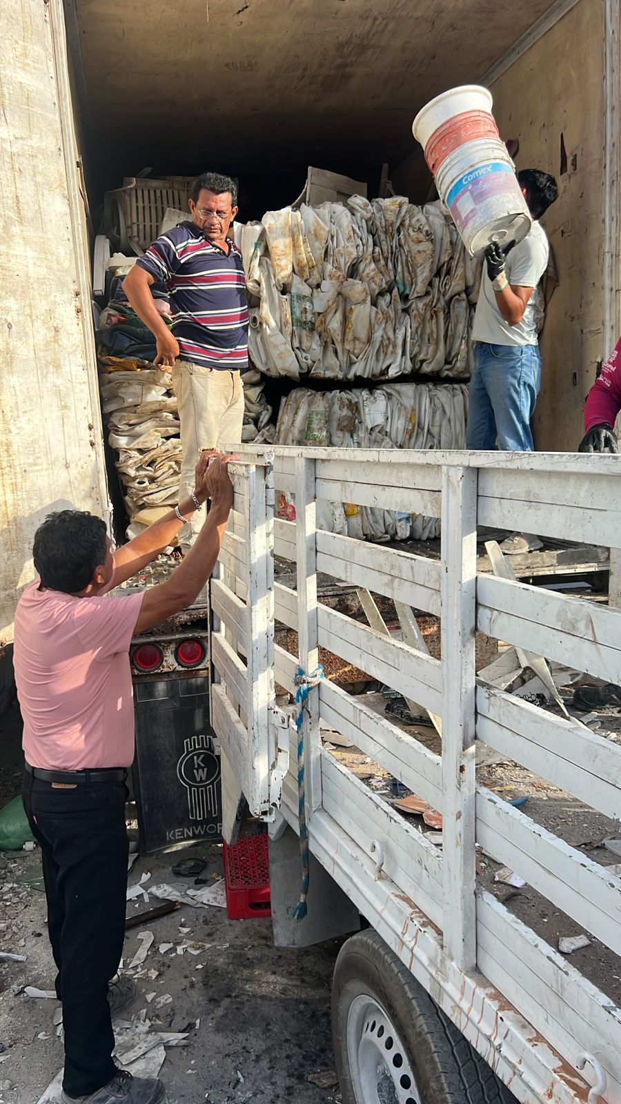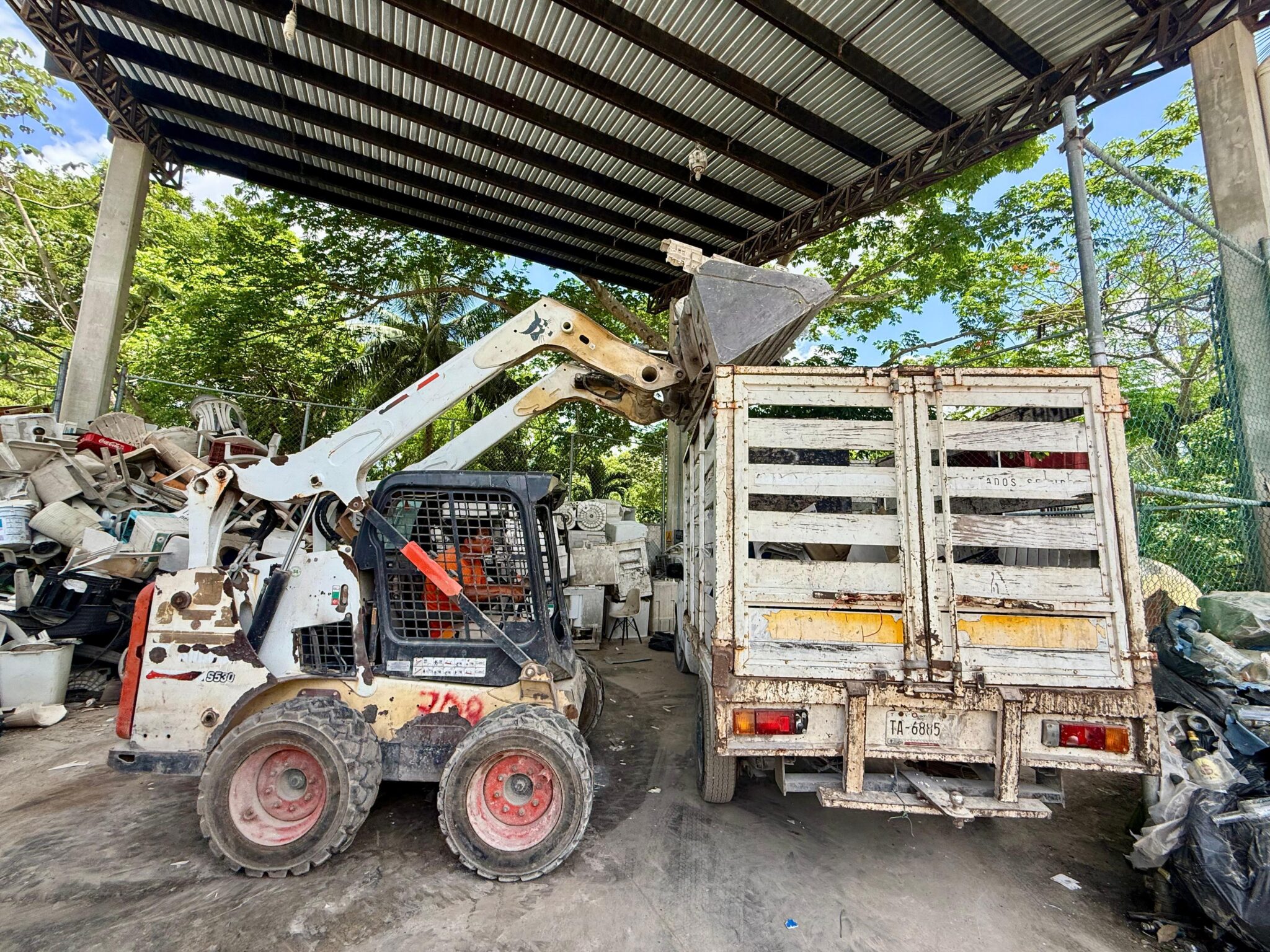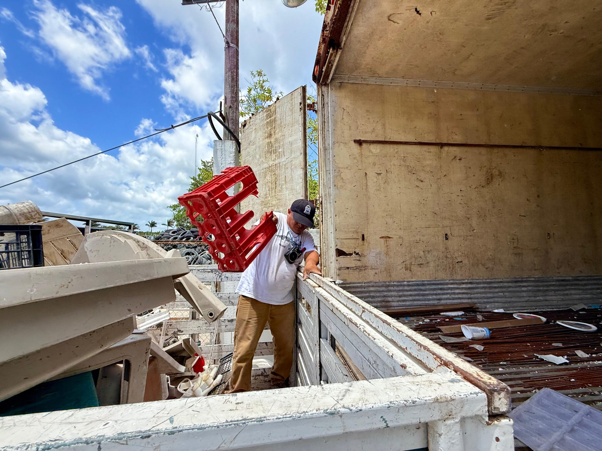 Hoy se envió un tráiler con más de seis toneladas de plástico procesado, entre ellos piezas de camastros, mesas y sillas que no pueden compactarse pero sí cortarse y agruparse para su traslado. Esto se suma a las 70 toneladas de llantas que han sido sacadas de la isla en los últimos meses.