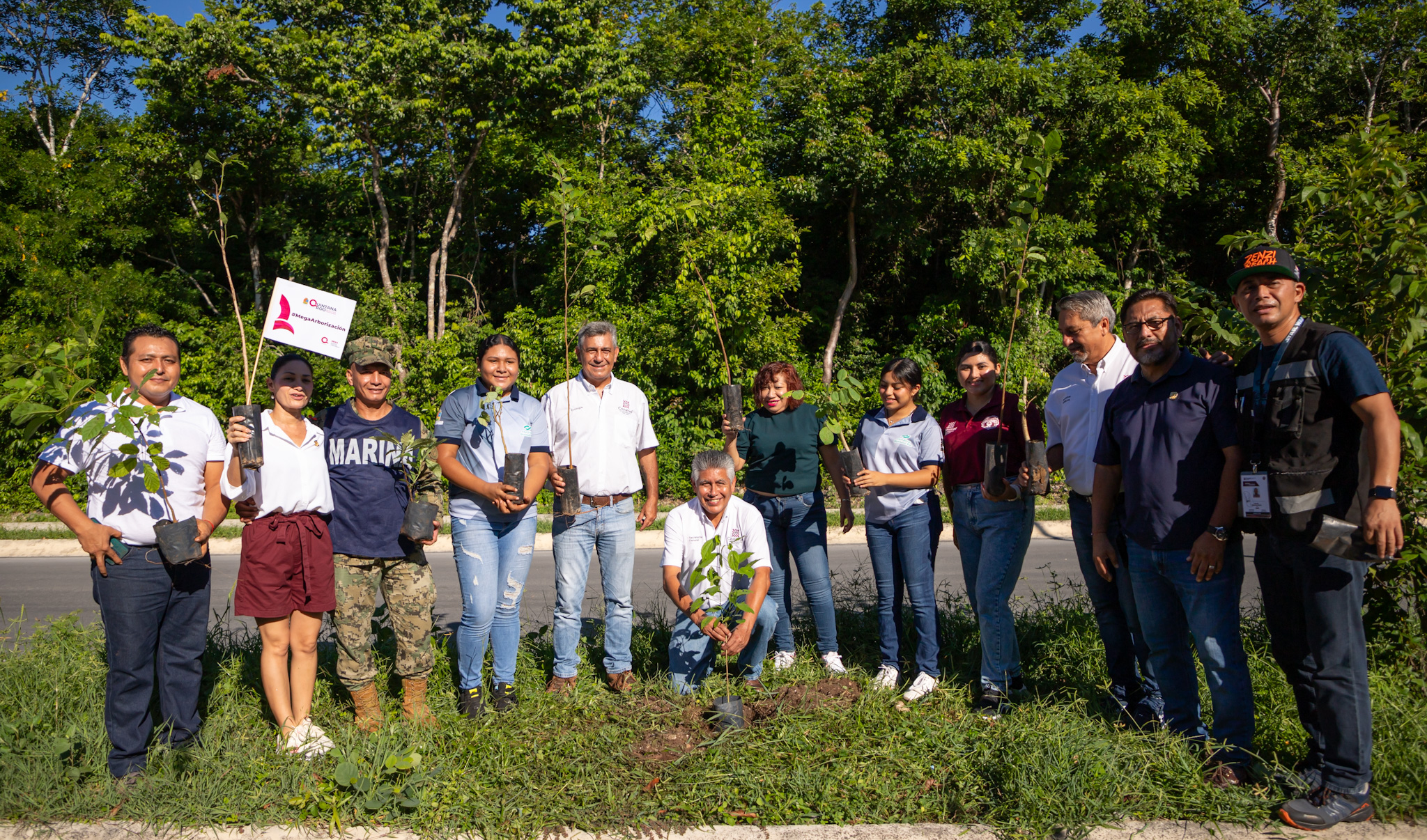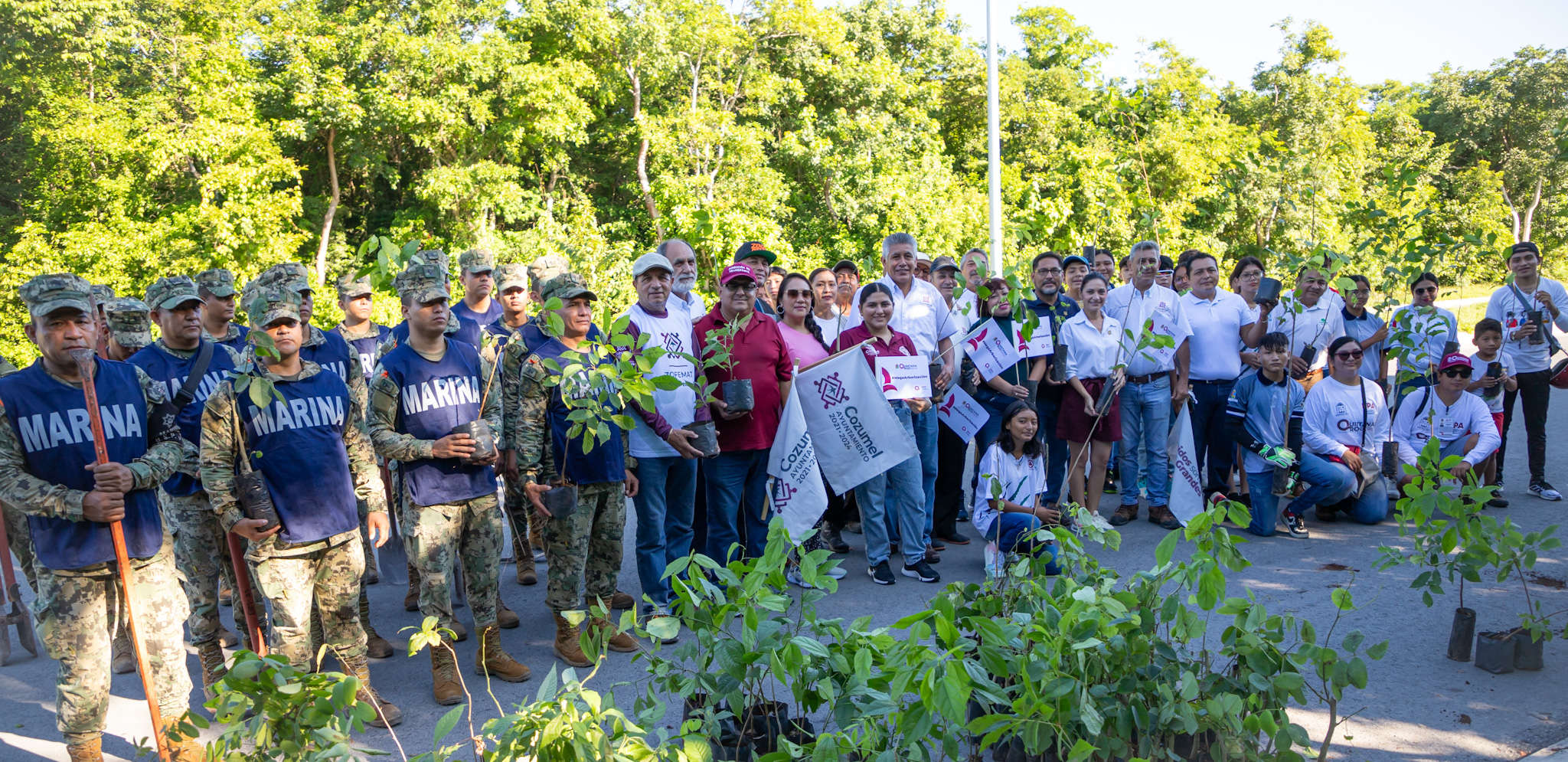 Con la finalidad de contribuir a contrarrestar los efectos del cambio climático y a reducir las intensas temperaturas, el Gobierno Municipal se une a la Secretaría de Ecología y Medio Ambiente (SEMA) a una “Mega Arborización” que se efectuó de manera simultánea en los 11 municipios de Quintana Roo en los que se sembró un total de cinco mil 500 árboles, en tanto que en Cozumel fueron 500 con apoyo de elementos de las fuerzas destacamentadas, integrantes del gabinete, y Cabildo, personal del Ayuntamiento, así como estudiantes y ciudadanos voluntarios.