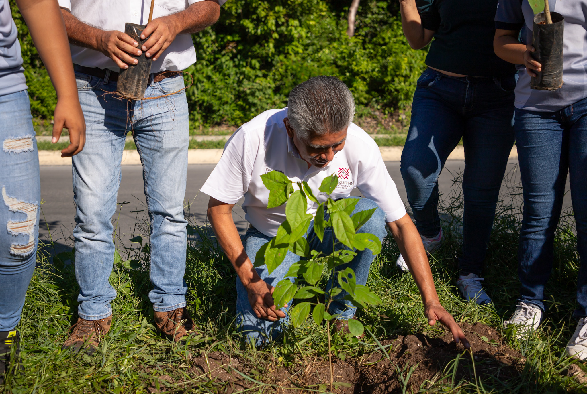 Cabe señalar que acompañaron al secretario general al banderazo y mega arborización, Genny Aracely Martínez Koh, quinta regidora y presidenta de la comisión de ecología, ambiente y protección animal; Fabiola Aislinn Chávez, Brito, tercera regidora; Luis Alberto Taylor González, director de Seguridad Pública y Tránsito; Cimitrio Manuel Peña Novelo, director de Transporte municipal; Karla Salzar Blanco, subdirectora de Desarrollo Económico; Ramiro Velez Marino; director de Patrimonio; Rafael Tenorio Pizano, director de Protección Civil, Bomberos y Guardavidas; Luis Arturo Ocampo Pedro, director de Servicios Públicos y Urbanos; Milton Zavala Aradilla, director de ZOFEMAT; Germán Yañéz Mendoza, subdirector de Ecología; Francisco Alejando Abad Vázquez, subdirector de CAMAR, Sunny Massiel Sánchez Gógora, coordinadora de Guardianes de Comunitarios Kanan Káax y personal de la Procuraduría de Protección al Medio Ambiente (PPA).