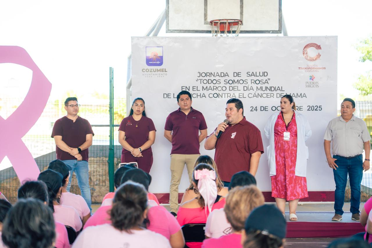 Con un fuerte compromiso institucional por la salud y el bienestar de las mujeres cozumeleñas, el gobierno municipal que preside José Luis Chacón, llevó a cabo la jornada de salud “Todos Somos Rosa” en el domo del parque San Gervasio, en el marco del Día Mundial de la Lucha contra el Cáncer de Mama.