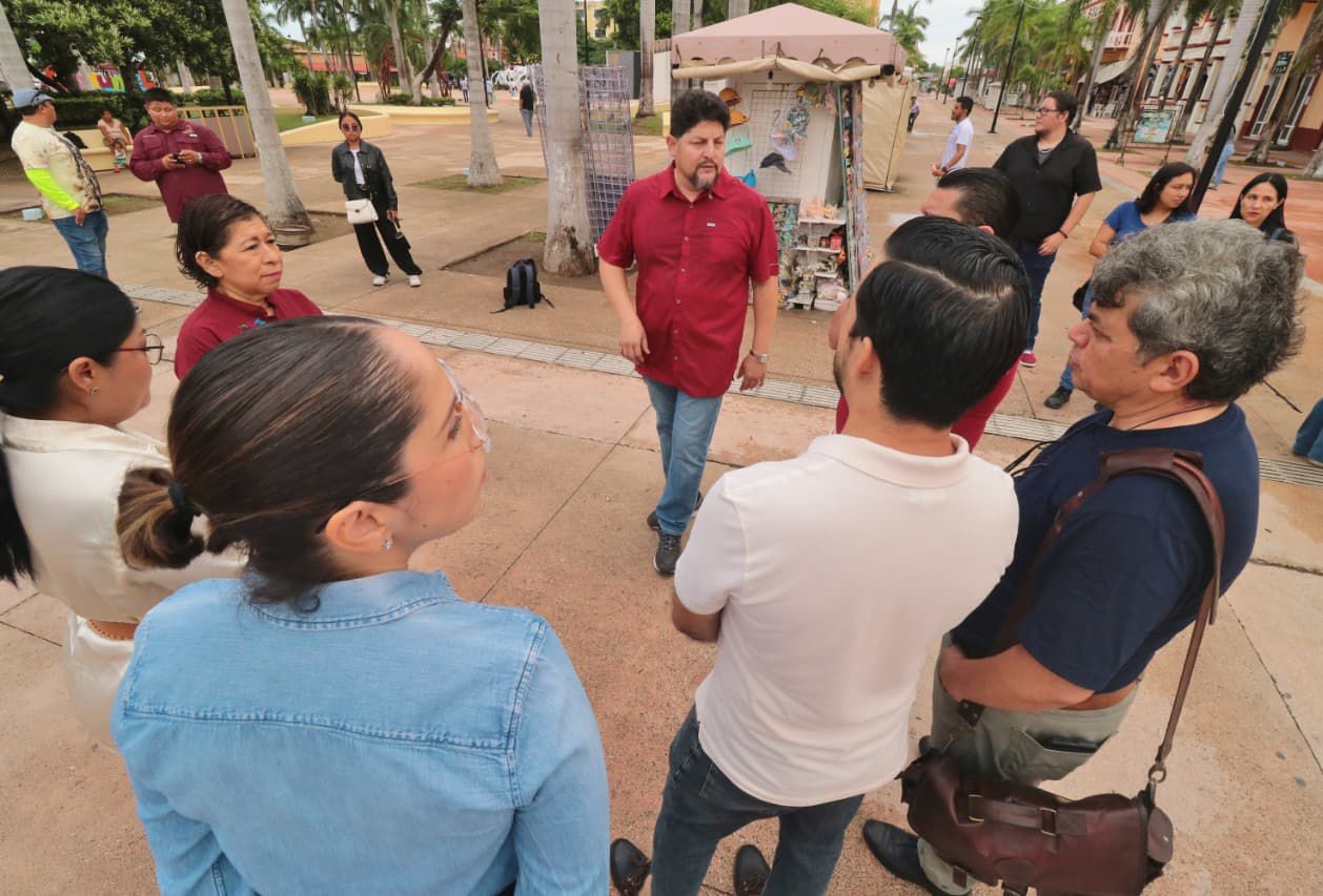 En seguimiento al programa permanente de mantenimiento urbano y fortalecimiento de la infraestructura turística, el gobierno municipal de Cozumel que encabeza el presidente José Luis Chacón Méndez, llevó a cabo un recorrido de inspección y supervisión en los trabajos de rehabilitación integral que se realizan en la superficie del parque Benito Juárez, considerado el “Corazón del centro histórico de la isla”.