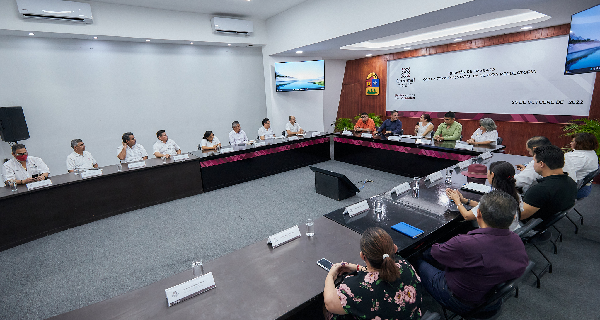 En el marco de esta reunión, la munícipe reiteró que para el Gobierno Municipal es primordial concretar este programa en el que se han tenido importantes avances con la Comisión nacional de mejora regulatoria, así como con la estatal, para lo cual el pasado 2 de septiembre del presente año se llevó a cabo el primer Foro de consulta para la estrategia estatal de mejora regulatoria, la cual con el cambio de administración estatal que encabeza la gobernadora, Mara Lezama, ha tenido a bien realizar esta reunión con el nuevo comisionado estatal para darle seguimiento.