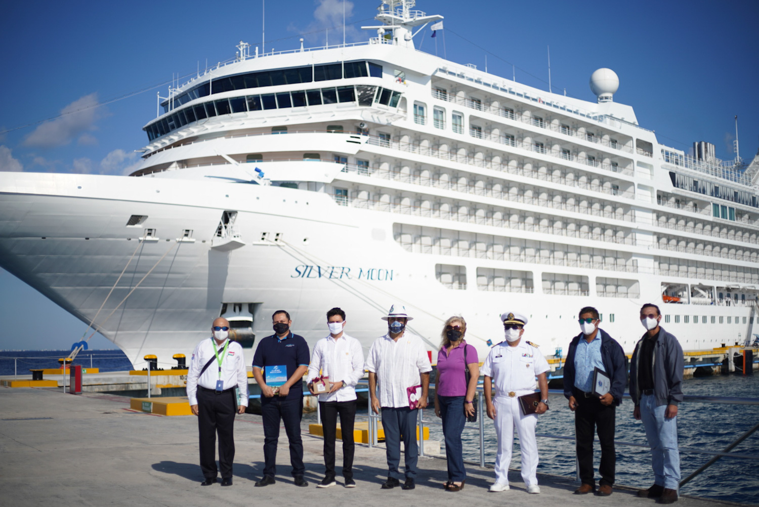 Como parte de la reactivación turística que está teniendo el destino turístico, arribó por primera ocasión a la Isla de Cozumel el exclusivo y ultra lujoso crucero M/V Silver Moon de la compañía Silver Sea Cruises Line, al cual el Gobierno municipal que encabeza Juanita Alonso Marrufo a través del director de Turismo y Desarrollo Económico, Badih Sleme Flores, le dio la bienvenida en el muelle internacional Punta Langosta.