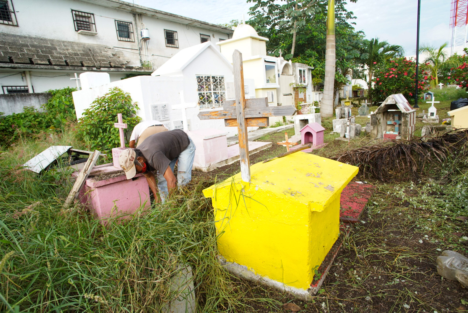 En vísperas del tradicional “Día de Muertos”, el Gobierno Municipal que preside, Juanita Alonso Marrufo, a través de la Dirección de Servicios Públicos municipales, realiza trabajos de mantenimiento y rehabilitación en los cementerios “San Miguel Arcángel” y “Mansión de Paz”, donde se llevarán a cabo las tradicionales misas el día 2 de noviembre en horario de 10 de la mañana y 4 de la tarde.
