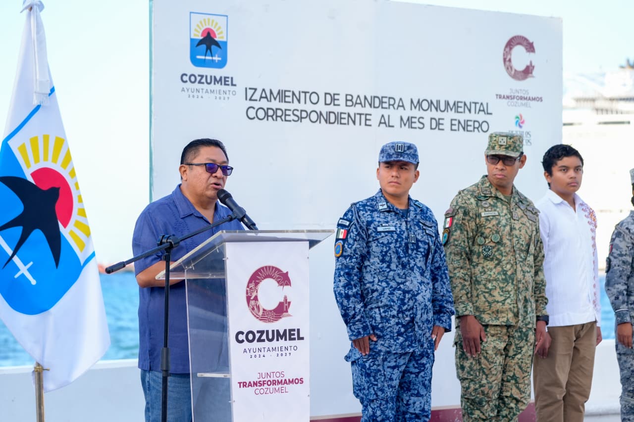 Durante esta ceremonia, Saturnino Magaña Valle, subdirector de Educación y Biblioteca Pública, emitió el mensaje oficial, en el que destacó que el izamiento de la Bandera Monumental representa la reafirmación de los valores que unen a la nación mexicana, como la libertad, la justicia, la legalidad, el respeto y el amor por la patria. Subrayó que el mes de enero simboliza un nuevo comienzo y una oportunidad para reflexionar sobre la responsabilidad colectiva en la construcción de un mejor país, un mejor estado y un mejor Cozumel.