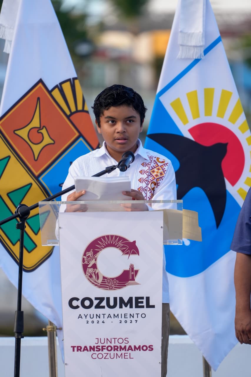 De manera especial, celebró la participación del Cabildo Estudiantil 2025, al señalar que su presencia simboliza la esperanza, la participación cívica y el interés de las juventudes por involucrarse activamente en la vida democrática del municipio, representando el presente consciente y el futuro de Cozumel.