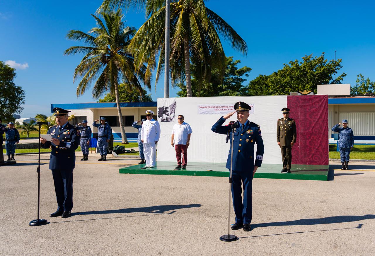 El Gobierno de Cozumel atestiguó la Ceremonia de Toma de Posesión del Mando y Protesta de Bandera del nuevo Comandante de la Base Aérea Militar No. 4, donde rindió protesta, el General de Grupo piloto aviador del Estado mayor, Román Eduardo Ajuria Benavides.