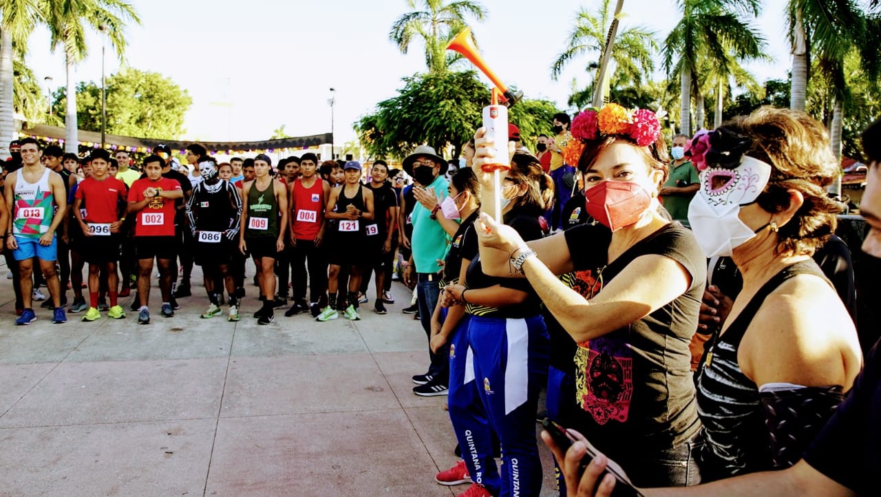 La señal de salida de la “Carrera de las ánimas 5K” en la que participaron 97 corredores, estuvo a cargo de la presidenta municipal, Juanita Alonso, al igual que la premiación en la que Ana Basso con tiempo de 14 minutos y 20 segundos resultó ganadora femenil, quien donó su premio para los programas de beneficio para los niños que lleva a cabo el Sistema para el Desarrollo Integral de la Familia (DIF) Cozumel, en tanto que el ganador de la rama varonil fue Iván Ansaldo, al cruzar la meta en un tiempo de 12 minutos con 18 segundos.